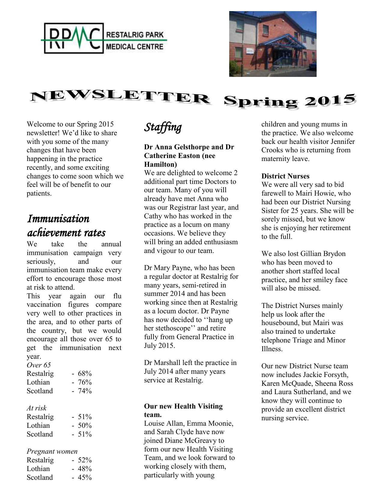 Newsletter - Restalrig Park Medical Centre