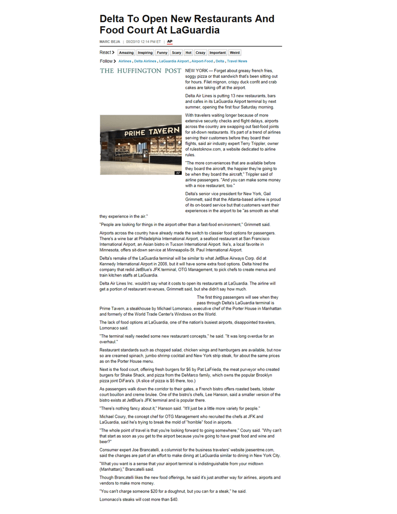 Delta To Open New Restaurants And Food Court At LaGuardia