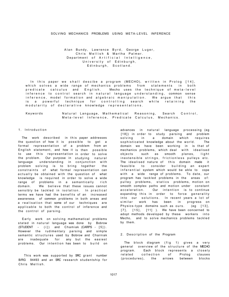 I n t h i s p a p e r w e s h a l l d e s c i b e a p r o g r a m (MECHO), w r i t t e n i n P r o l o g [ 1 4 ] ,