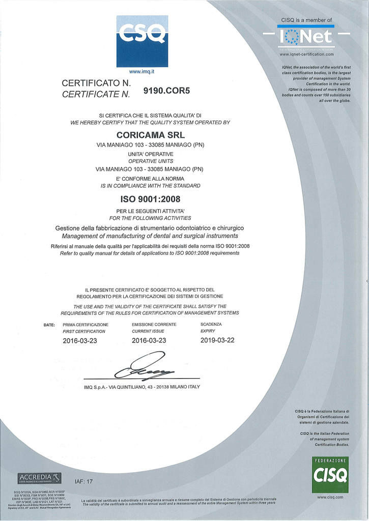Page 1 www.imd.it CERTIFICATO N. CERTIEICATE N 9190.COR5