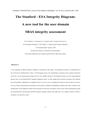 The Stanford-ESA Integrity Diagram, as the name itself indicates, is a modification of the well known IntegrityAvailability-Accuracy 2D histogram proposed by the WAAS laboratory of the Stanford University, commonly