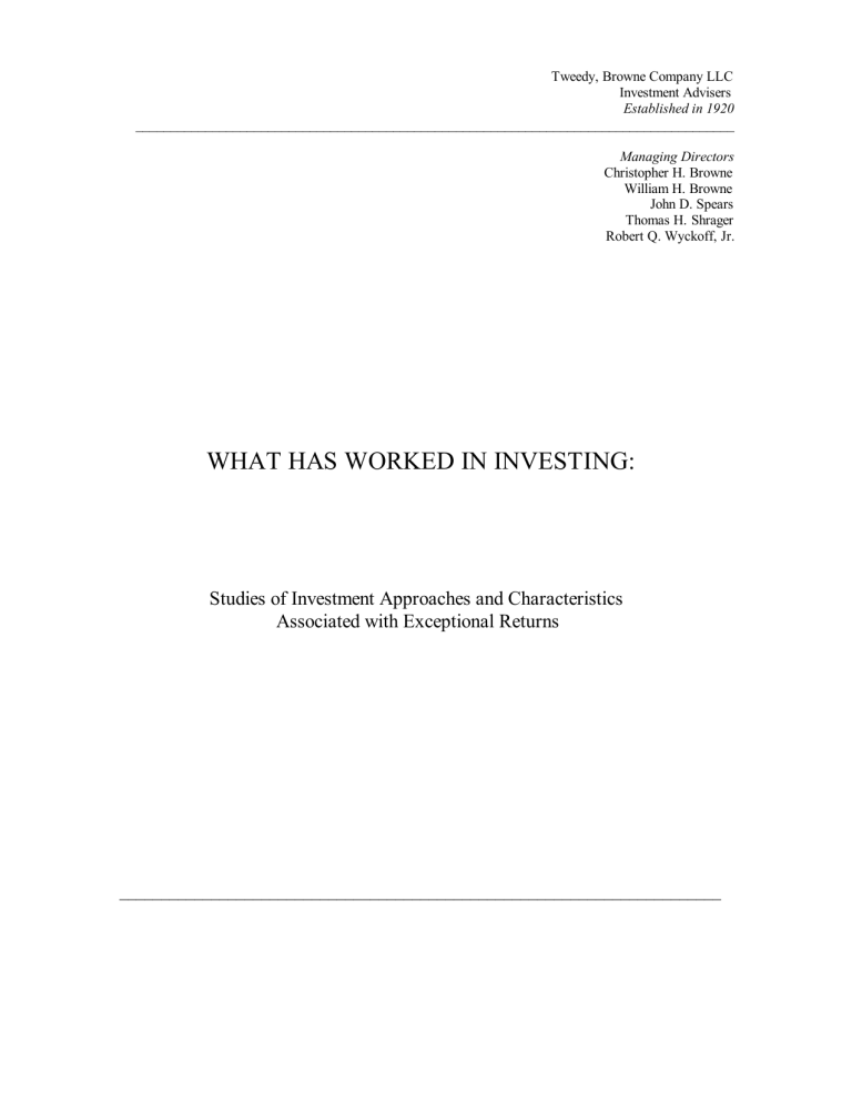What Has Worked In Investing is an attempt to share with you our knowledge of