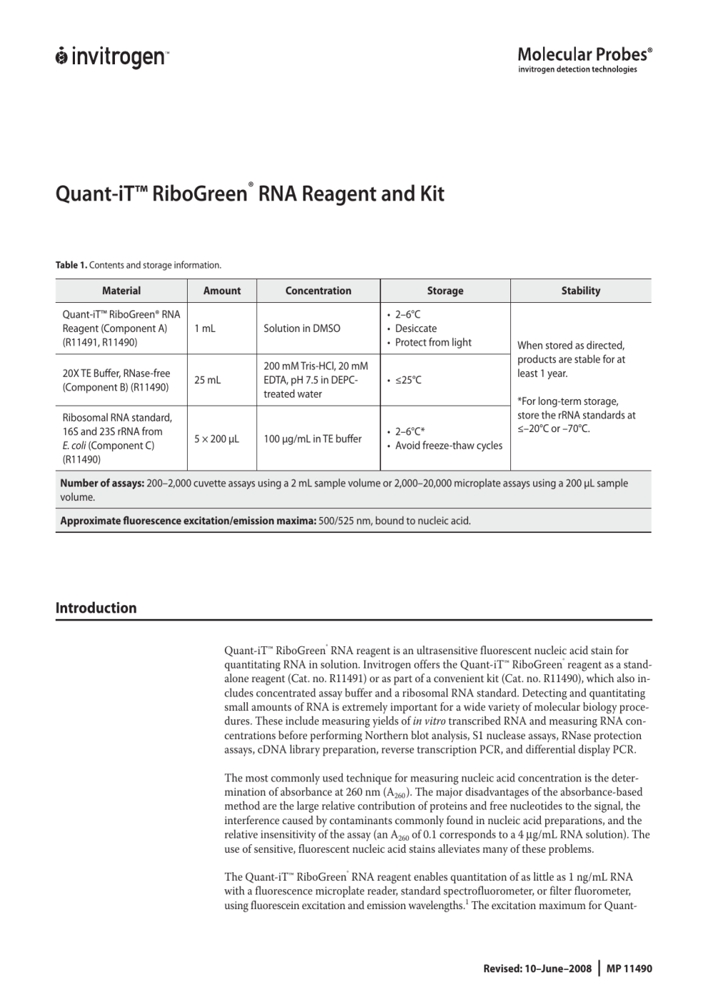 Quant-iT™ RiboGreen® RNA Reagent and Kit