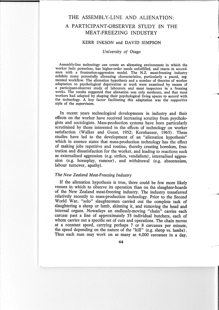 The Assembly-Line and Alienation: A Participant