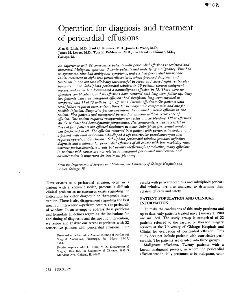 Operation for diagnosis and treatment of pericardial effusions