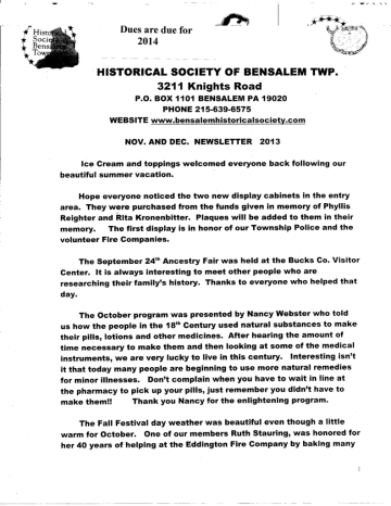 November/December 2013 - Bensalem Historical Society