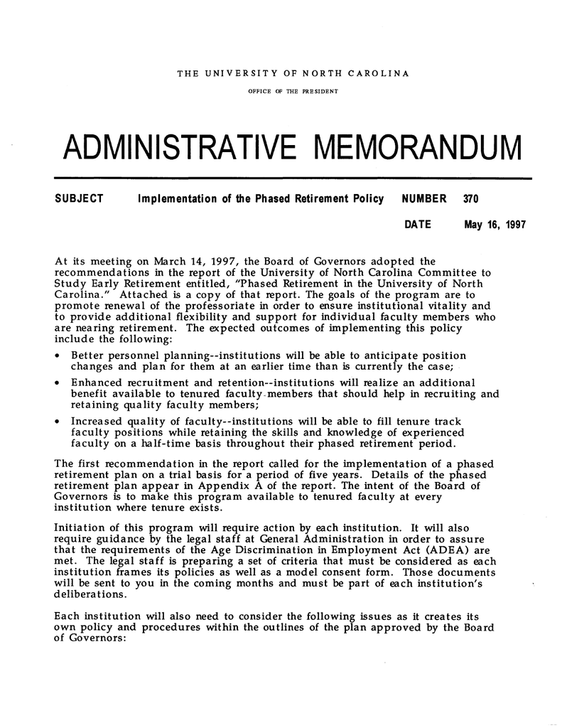 Implementation of the Phased Retirement Policy