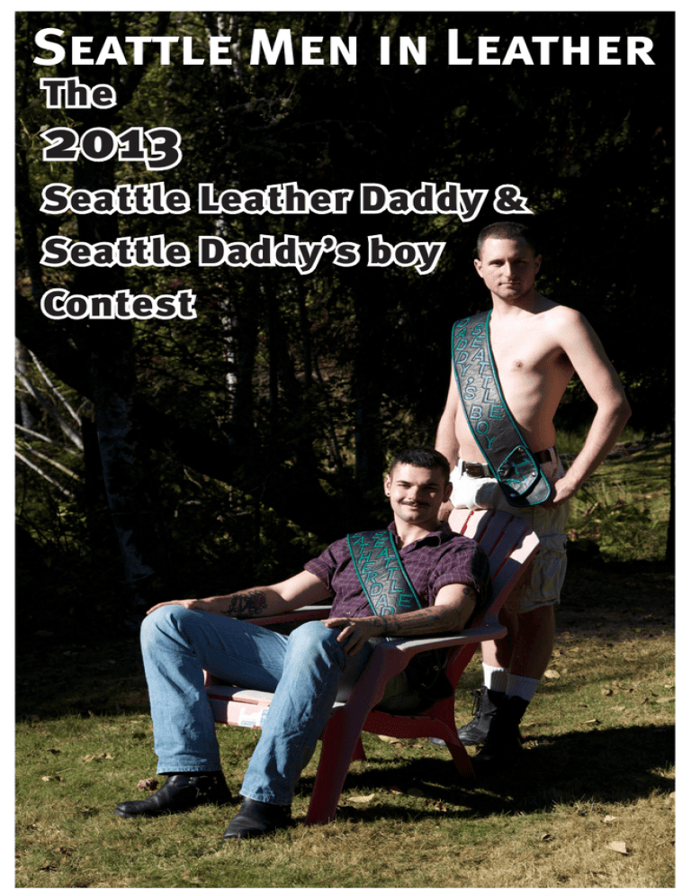 Seattle Men in Leather The 2013 Seattle Leather Daddy & Seattle Daddy’s boy Contest * T-Shirts * Jockstraps * Underwear * Socks * Sex Towels * Books * Calendars * Cards * Candles * Baseball Hats Seattle Men in Leather Present The 24rd Annual Seattle Leather Daddy and Daddy’s boy Contest To Benefit Chicken Soup Brigade Lifelong’s Food Program Friday, 23 November 2012 7:00 - 10:00 – Meet and Greet The Cuff Complex Saturday, 24 November 2012 Morning – Private Judging Interviews 7:00 - 9:00 – Contest The Cuff Complex Sunday, 25 November 2012 11:00am - 2:00pm – Victory Brunch CC Attle’s M Y Generic Leather Productions of Washington Presents FRIDAY AUGUST 30, 2013 THRU SUNDAY SEPTEMBER 1, 2013 Seattle, Washington More info: http://nwleatherweekend.org GLPW is a Major Sponsor of: Y Y Lead, Inspire, Network, Connect, Succeed April 12 - 14, 2013 Who: Leather, BDSM, Kink, Fetish, Poly, Swing, Sex Positive Communities What: Developing our leadership, teamwork, communication, and community involvement Where: Downtown Seattle, Washington How: Learn more at: www.kinklincs.org SEA-PAH SEATTLE PUPS AND HANDLERS THANK YOU SEATTLE LEATHER DADDY RYAN, DADDY’S BOY DAMIEN AND SEATTLE LEATHER GRANDDAD DADDY JEFF FOR A SUCCESSFUL YEAR! GOOD LUCK TO PUP TRIX AND TO ALL THE OTHER CONTESTANTS! COME GET DOWN On All Fours AND ROMP WITH US! VISIT OUR WEBSITE FOR OUR CALENDAR OF EVENTS SEAPAH.COM FACEBOOK.COM/SEAPAH [email protected] The Center for Sex Positive Culture The Center for Sex Positive Culture is is proud 24thannual annual proudtotosupport support the the 23rd Seattle LeatherDaddy Daddy & Seattle Leather &Daddy’s Daddy’sboy boyContest Contest BDSM Bondage Leather SexPositiveCulture.org Congratulations to Daddy Ryan, Boy Damien, and Granddad Daddy Jeff on a successful year! Best wishes to all the contestants! Judge Knotty Brent Mr. Powerhouse Leather 2012 Knotty Brent (Brent Gannetta) has been tying up boys since 2010. While relatively new to kink and BDSM, Brent brings energy, irreverence and detailed knot work to the table. His style combines shibari knots and techniques learned at SF Ring where he presents a variety of innovative programs on rope bondage. Brent has performed in many bars in San Francisco and around California. He also appeared in the Bound Jocks booth at IML 2011 and 2012. Brent is Mr. Powerhouse Leather 2012 and first runner-up for both Mr. San Francisco Leather 2012 and American Leatherman 2012. He has volunteered for countless fundraisers and Leather events and loves to share his craft with others. In addition to rope and all things gray hanky, Brent is well-versed in the ways of the red, yellow and houndstooth hankies. When not hanging men from the rafters and wiring up their bits to fiendish devices (with consent, of course), he can be found spending time with his partner (and often demo bottom) Eddie, or watching Transformers cartoons. Judge Shawn Holman Seattle Leather Daddy 2011 Shawn Holman’s first introduction to leather was when a friend talked him into going on an epic road trip from Salt Lake City to Denver, CO to see the Rocky Mountain Regional Drummer contest. This naturally led to him dating and being mentored by one of the contestants. Shawn enjoyed the anonymity of living on the periphery of Seattle’s leather community until a friend gave him a nudge to take on a more visible role. Shawn proudly served as Seattle Leather Daddy 2011 and continues to be active in the Seattle community, serving on the board of Seattle Men in Leather. Shawn has a fetish for wearing leather and enjoys the camaraderie and fraternity of the men’s leather community. Shawn lives with his partner Joel and enjoys movies, books, plays, listening to podcasts, musical theater, knitting and terrarium building in his spare time. Judge Alexander Mentele Mr. Gay Seattle 2012 Alexander has worked extensively with community organizations, including the Imperial Court of Seattle, as Mr. Gay Seattle, Seattle Men In Leather, the Sister’s of Perpetual Indulgence the Abbey of St. Joan (Seattle) and the Abbey of the Long Cedar Canoe (Vancouver, BC), LifeLong AIDS Alliance, Gay City Health, the Trevor Project, Out & Equal, the Human Rights Campaign, Washington United For Marriage and served on the founding committee of Social Outreach Seattle. His most significant accomplishments include organizing F##k With Pride, the Seattle Pride launch party promoting a safe, sex positive atmosphere for Seattle Pride weekend and benefit for Gay City Health; collaborating on projects that collectively raised more than $35,000 in support of the efforts to approve Referendum 74, and spending countless hours volunteering alongside other community activists and organization in helping to secure marriage equality in Washington state. Alexander’s ambition for title-holders of any organization is for one to have a drive to work with those outside of ones organization, to build longlasting relationships and promote a sense of value and belonging for all within the Seattle community. Judge Brandon Reyes Seattle Daddy’s boy 2011 Brandon has been a Washington resident, mostly in the Greater Seattle Metro area, for the majority of his young and adult boy life. He has been an active member of Seattle Men In Leather for several years, appreciating the camaraderie, activities and principles of the leather community, taking special interest in the fundraisers to give back to the community. Brandon proudly served as Seattle Daddy’s boy 2011 and is proud to have raised impressive funds for Chicken Soup Brigade. He now serves as a Member-at-Large in the Seattle Men In Leather organization and resides as Chair of Invasions. Judge Rick Rueben Founder, Bellingham Leather Men I have been active member of the Northwest Leather community for over 10 year and currently a dedicated member of SML for 3 years. I am active in rebooting Seattle Boys of Leather. I founded Bellingham Leather Men. I am the proud reciprecant 
