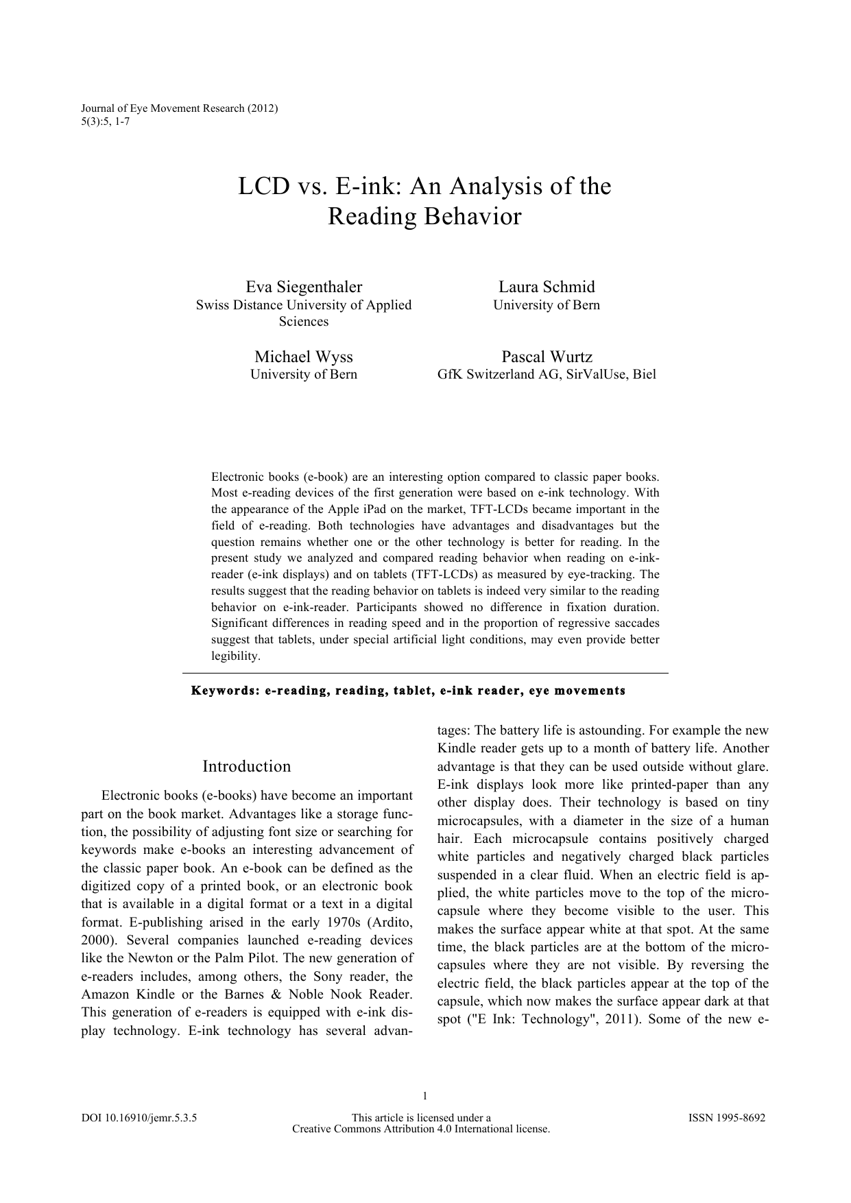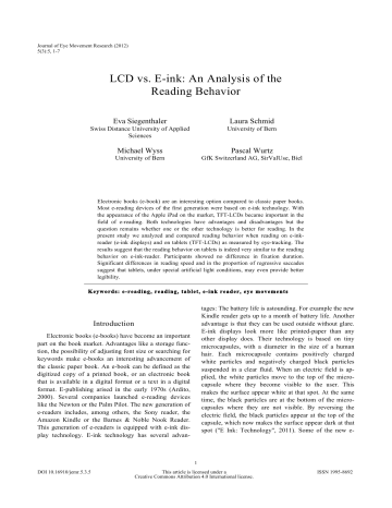 (2011). Comparing reading processes on e-ink displays and print. Displays, 32 (5), 268-273.