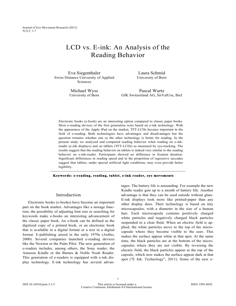 Keywords: e-reading, reading, tablet, e-ink reader, eye movements