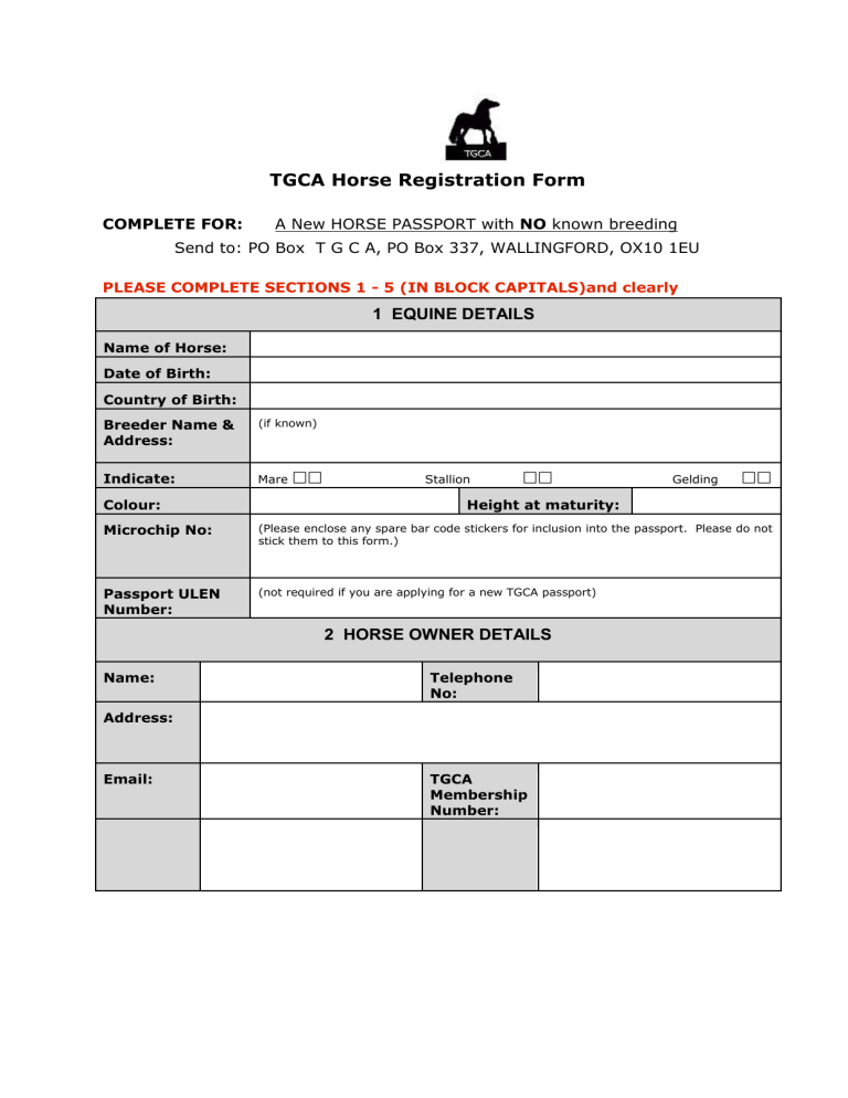 TGCA Horse Registration Form - Traditional Gypsy Cob Association