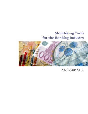 Monitoring Tools for the Banking Industry A Tango/04® Article CONTENTS Introduction……...…2 Business Challenges and trends…………..3 Role of it in the complex financial world………………..4 Governance, risk and compliance monitoring………….4 Tango/04 solutions…6 Conclusion………….9 Monitoring Tools for the Banking Industry Many factors have contributed to transform the fierce competitive environment that is the financial services industry, especially in banking sector, but the most important ones can be: The explosive growth and use of Internet, new entrants in the banking market and the avalanche of regulatory requirements. Therefore, to be successful in this new landscape, banks will overcome these challenge, finding the key differentiators through the right changes in the customer experience, and operate its financial products and services as efficient as they can. Proactive attitude reduces the risks and reactive responses, and creates a culture of security and confidence Introduction During the last decade, banking activity has been very complex. Many factors have contributed to transform the landscape, but surely, executives agree in three main aspects: Internet factor, high competitive pressure over margins and the continue increment in new regulations. Additionally, we could incorporate other elements that present new challenges to the management: increased life expectancy requires new banking products and services, and new opportunities in markets like China and India, with millions of people to bankarized. But go back to the basics, and take a few minutes to review the following critical factors: • Internet The unprecedented growth of the Internet, even in emerging countries, give the people fast information access and create more pressure for financial institutions. Over the next years, the banking industry, specifically the retail segment, will be forced again to adapt rapidly to even more changing customer expectations. Customer diversity will influence how they perceive value, and it will change as a result of profound shifts in demographics. • High pressure on margins At present, than never before, reduce operating cost to protect margins is a common challenge for financial institutions. However, most financial 2|Page- institutions cannot afford dedicated IT staff at every interaction point (e.g.: branch offices or ATM in the retail business). So, banks will need to think more intelligently about how to drive increased operational efficiency, using outsourcing, process changes, and new technology tools to reduce costs while enhancing the customer experience and innovation. • Regulatory Requirements Changing the Landscape Demands for transparency and supervisory pressure from regulators will increase. To comply with this trend, banks will need to take advantage of improving monitoring technologies and realize that security is about much more than preventing unauthorized access to their customers´ data and funds. Therefore, to be successful in this new competitive landscape, banks will need to overcome the new challenges and find the key differentiators and the competitive advantage through the changes in the way they design and operate their financial products and services, but also in the availability and security of the services more visible to customers. In this document, we describe the emerging priorities in the management of key information for the banks, with an emphasis on the security information, technology health and business services indicators. Monitoring Tools for the Banking Industry Indeed Banks will have to focus on those initiatives that allow them to implement control mechanisms to manage the business dynamic evolution, manage different technological platform that support business processes and ensure a constant monitoring about the integrity and security of the confidential information. Finally, we want to foster a culture of security, control and monitoring that contribute not only to comply with requirements but to establish a new pillar to differentiate from the competitors and build customer loyalty. Business Challenges and Trends Consider the following: Essentially, banking business is very simple. We give a bank our money to keep it safe for us, and then the bank turns around and gives it to someone else in order to make money for itself. In professional terms, banks receives deposits and offer loans and derive a profit from the difference in the interest rates paid and charged, respectively. However, everybody knows that the complexity rely in the multiple variety of type of banks, products, services, payment instruments, processes, controls, interaction point with customers, regulations, channels, etc. Some examples: If you are a business customer, you probably have utilized one of the different types of payment services that banks offer in the market. The payment business in critical for the banks, because it represent an important source of revenues. For this reason, is critical to understand the complexity of their processes in order to enhance the operational efficiency, reduce the associated risks and ensure the integrity of the transactions. Customer can initiate the payment transaction from different sources: Swift message, phone instructions, Internet, ATM etc. Payment operations involve numerous steps from initiation through clearing and settlement. 3|Page- How the customer knows in real time that all transactions have been successfully completed? How can the payments manager spot delays or bottleneck? As we mentioned before, the payment business is one of the most important products but consider also collection services, trading and foreign exchange into the wide range of product, all of them with similar complexity in the corporate business. In the retail bank, in spite of maintaining availability of online banking, customer records and transactions is critical to retain customer loyalty, it is even 