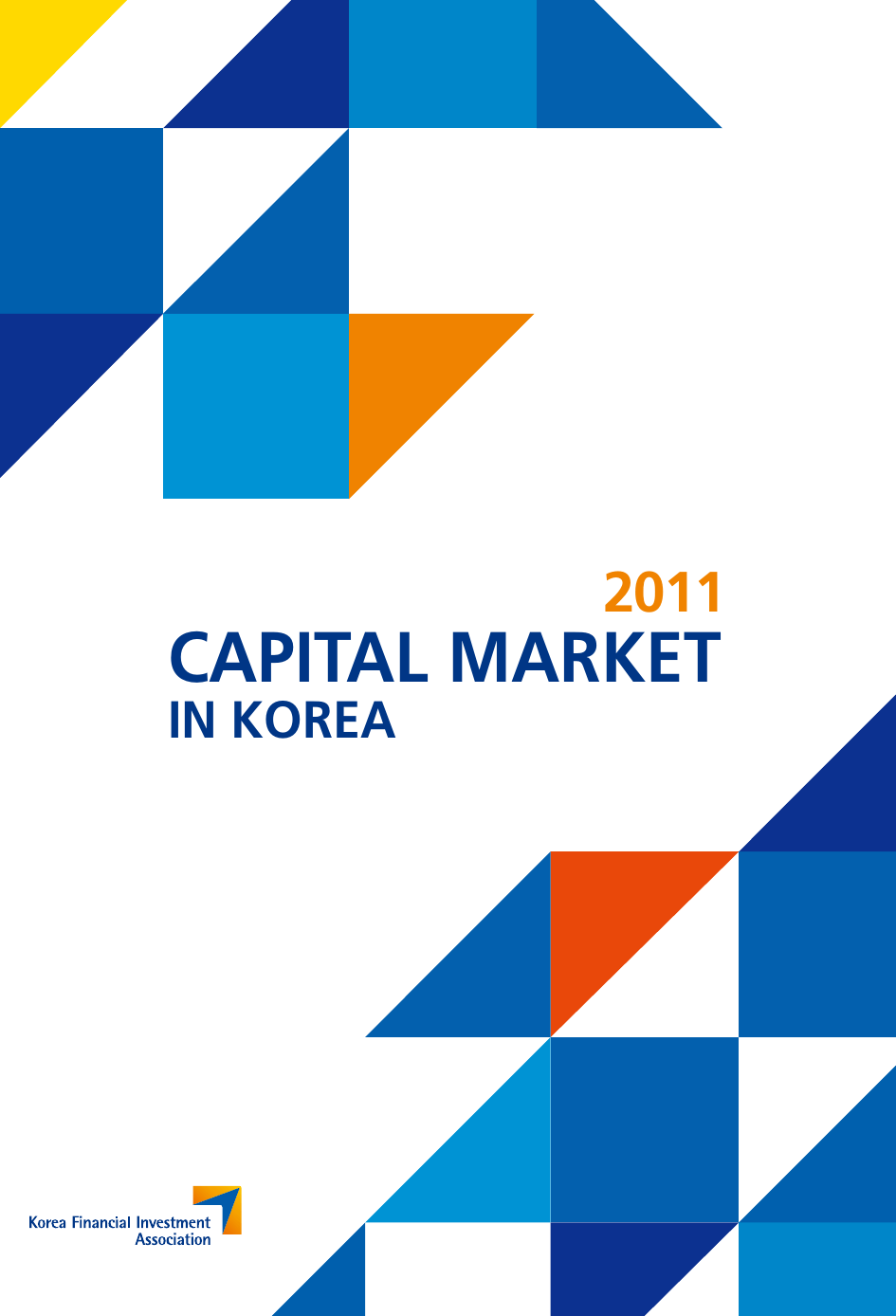2011 Capital Market IN Korea 2011 CAPITAL MARKET IN KOREA This book has been written by the Research and International Affairs Department of the Korea Financial Investment Association (KOFIA). While every endeavor has been made to ensure the accuracy of the information contained herein, the Korea Financial Investment Association makes no claim to it being authoritative in regard to the subject matter covered. For further information, please contact the Research and International Affairs Department at [email protected]. Preface C A PI TA L M A R K E T I N KO R E A 2 0 1 1 The first half of 2011 saw the Korean capital market record its strongest growth in recent years – indicating that Korea has profoundly recovered from the downturn that beset the global financial markets in the autumn of 2008. In the face of the ongoing fiscal uncertainties in the eurozone and the sluggish recoveries of the US, the UK and other major economies, the Korean capital market has surged forward, reaching post-crisis levels and beyond. The KOSPI, Korea’s representative stock index, has shown a rapid pace of recovery, hitting record highs. The bond market also maintained sustained growth, recording higher levels of bond issuance and trading. Demand for Korean bonds has greatly increased due to concerns over the soundness of advanced countries resulting from Europe’s fiscal crisis. With greater participation in the market by securities firms, the daily average trading volume of 3-year government bond futures and US dollar futures has significantly increased from 2009, and the trading volume of OTC derivatives has also shown an upward trend. While the fund market has suffered from a record net outflow in 2009, fund redemption has subsided since the second half of 2010. On the regulatory front, the government continues to refine the 2009 Financial Investment and Capital Markets Act to promote greater deregulation and innovation in the financial services industry and address gaps in its coverage. Specifically, the Korean government is working to further amend the Act to foster the growth of large-scale investment banks that can compete on the global markets and to boost hedge funds and prime brokerage services in Korea. Another important area to be highlighted is the pension fund market and postretirement planning. As we move from an aging to an aged society, the Korean economy and capital market must be ready for the challenge and adopt new strategies to ensure retirees have access to the funds necessary to live out their retirement. As such, KOFIA is working with the government and industry to explore strategies to channel Korean pension funds’ vast financial resources into such areas as equity market, so that it may further fuel the growth of the Korean economy and thereby gain value as the economy develops. In light of all the factors stated above, I am confident that the Korean capital market and financial investment industry will build upon the achievements of 2010-2011 and continue to move closer toward realizing its goal of becoming a leading international financial center. I hope that this publication will serve as a useful introduction and reference guide to better understand the abundant investment opportunities existing in the capital market in Korea. July 2011 Kun Ho Hwang Chairman & CEO Korea Financial Investment Association CONTEN TS Chapter 1 Korean Economy and Capital Market 11 I . II. III. IV. V. VI. VII. The Need for an Advanced Domestic Capital Market Future Directions for the Financial System Trends in the Size of Financial Institutions and Capital Markets Corporate Financing Balance of Payments Ratio of Financial Assets and the Capital Markets to GDP Trends in Financial Assets Held by Investor Type 11 12 14 16 18 19 20 Chapter 2 Development of the Korean Capital Market 24 I. II. III. IV. V. VI. VII. Introduction Early Stages of Modernization (1953 -1967) Capital Market Development (1968 -1978) Market Liberalization (1979 -1985) Expansion of the Capital Market (1986-1995) Asian Financial Crisis and Reform Measures (1996 -2003) Enhanced Competitiveness of the Capital Market (2004-2010) 24 25 27 31 33 37 41 Chapter 3 Stock Market: Primary Market 43 I. II. III. IV. V. VI. 43 44 46 49 51 52 Definition of Equities Types of Issuance Procedures in New Stock Issuance Recent Developments in the Primary Market Equity Underwriting Over-the-Counter Market Chapter 4 Stock Market: Secondary Market 54 I. II. Secondary Market Changes in the Equity Secondary Market 54 55 Chapter 5 Stock Market Division of KRX 64 I. II. III. IV. Stock Market Listing on the Stock Market Transactions and Settlement Self Regulation of the KRX 64 66 73 82 Chapter 6 KOSDAQ Market Division of KRX 85 I. II. Introduction of the KOSDAQ Market KOSDAQ Market Operations 85 89 Chapter 7 FreeBoard 98 I. II. III. IV. V. VI. VII. Overview Market Statistics FreeBoard Listing and Preliminary Listing Trading on the FreeBoard Disclosure Delisting Incentives for Listing on KOSDAQ 98 100 101 104 107 111 112 Chapter 8 Bond Market: Primary Market 114 I. II. III. IV. Structure of the Primary Bond Market The Current Status of the Primary Bond Market Bond Issuance Methods Issuing Methods by Bond Type 115 116 118 120 Chapter 9 Bond Market: Secondary Market 127 I. II. III. IV. V. Structure of the Secondary Bond Market Current Status of the Secondary Bond Market Foreign Investment in the Korean Bond Market KOFIA’s Recent Efforts to Develop an Efficient OTC Market Bond Market Infrastructure 127 133 139 145 150 Chapter 10 Derivatives Market 161 I. Definition of Financial Investment Products II. Definition of Derivatives III. Status of the Korean Derivatives Market 161 162 164 Chapter 11 Securitized Products Market 171 171 176 182 187 I. II. III. IV. Introduction Current Status of Asset-backed Securitization in Korea ABS Issuance Improvement of ABS Market System Chapter 12 Financial Investment Services (1) 193 I. Overview of Financial Investment Compan
