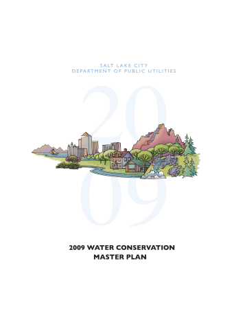 20 09 S a lt L a k e C i t y D e pa rt m e n t o f P u b l i c U t i l i t i e s 2009 Water Conservation Master Plan 2009 Water Conservation Master Plan TABLE OF CONTENTS Acknowledgement i Tables and Charts ii List of Program Measures iii Glossary of Terms, Abbreviations, and Acronyms vi Executive Summary 1 ES1 Background 1 ES 2 Development Committee Recommendations 1 ES 3 Water Conservation Goal 5 ES4 Plan Organization 6 Chapter 1: Water System Profile 8 1.1 Background 8 1.2 Water Conservation 8 1.3 Water Service Area 13 1.4 Supply and Demand 13 1.5 Water Resource Recommendations 18 Chapter 2: Program Measures and Selection Criteria 20 2.1 Background 20 2.2 Water Conservation Office Program Measures 22 2.3 Program Objectives 49 2.4 Year 2010 Annual Report and Program Measure Review 50 2.5 City and Community-Based Conservation Action Plans 53 Chapter 3: Integrating Water Conservation and Sustainability 57 3.1 Sustainability 57 3.2 Disaster Resilience 63 3.3 Water Conservation and Sustainability Matrix 64 Chapter 4:Implementation Plan 67 2009 Water Conservation Master Plan Appendices Utah Code 73-10-32 Water Conservation Plan Required Minutes or the PUAC from October 22, 2009 Approving Plan Water Shortage Contingency Plan Salt Lake City Water-wise Plant List Water Rate Ordinance Best Management Practices 2009 Water Conservation Master Plan Acknowledgments Dwight Butler Dan Cannon Amy Clyde Doug Dansie Greg Graves Wayne Green Russ Jacobsen Kelly Kopp Fred Liligren Allan McCandless Larry Myers Mark Ruff Bill Rutherford Pat Shea Janet Simonich Gregg Smith Emy Storheim Jan Striefel James Tangero David Terry Jamie Tsandes The successful completion of this water conservation master plan depended on the efforts of several staff members of the Department of Public Utilities, the City Council Office, the Mayor’s Office, and the Division of Sustainability. In particular, we acknowledge Stephanie Duer, Jim Lewis, Mark Christensen, Nick Kryger, Laura Briefer, Brad Stewart, Lehua Weaver, Holly Hilton, and Debbie Lyons. In addition, the Department would like to thank the community for its efforts thus far in achieving our water conservation goals. It is only through our working together that we will accomplish what we set out to do—ensure a continued supply of high quality drinking water and a meaningful quality of life now and for the future. i 2009 Water Conservation Master Plan List of Charts, Figures, and Tables Table 2.2 Proposed 2010 Conservation Plan Measures Review 2 and 51 Table 1.2 Estimated Service Area Demand with Conservation 6 and 14 Chart 1.1 SLCDPU Water Usage within Service Area Chart 1.2 Comparative Water Use Trends by Customer Category 10 Chart 1.3 Water Use Reduction Percentages (Y2000 as Baseline) 11 Figure 1 SLC Conservation Trend 12 Table 1.1 SLC Water Usage and Conservation Trends 12 Table 1.2 Estimated Service Area Demand (Y2000 Use) 14 Table 1.3 Estimated Service Area Demand with Conservation 14 Table 1.4 Projected Dry Year Production 16 Table 1.5 Existing Source Capacities 17 Table 1.6 System Storage Requirements 18 Chart 2.1 Connections by Customer Class 20 Chart 2.2 Demand by Customer Class 21 Table 2.1 Water Conservation Program Measures 23 Table 2.2 Proposed 2010 Conservation Plan Measures Review Table 2.3 Salt Lake City Department/Division Conservation Action Plans 54 Table 2.4 Community-Based Conservation Action Plans 56 Table 3.1 Water Conservation and Sustainability Matrix 65 9 2 and 51 ii 2009 Water Conservation Master Plan List of Program Measures Reference Number Page Number Brochures E-1 27 C&I Certification E-2 28 C&I Conservation Plans E-3 28 Classroom Measures E-4 28 Demonstration Gardens E-5 29 GardenWise E-6 30 It’s a No Drainer Campaign E-7 31 Landscape and Irrigation Style Guide E-8 31 Landscape Assessment and Check-ups E-9 32 Landscape Plant List E-10 32 Landscape Templates E-11 33 Lawn Sprinkler Check-ups E-12 33 Outdoor/Indoor Water-use Counter E-13 33 Parkstrip Plant List E-14 34 Plant list database E-15 34 Planting and Maintenance Guide E-16 34 Private Garden Project E-17 34 Residential Leak Detection and Repair E-18 35 Specialized Garden Guides and Plant Lists E-19 35 Virtual Water Conservation Garden E-20 35 Water Savings Virtual Meter E-21 36 Waterpedia E-22 36 Program Measure iii 2009 Water Conservation Master Plan Reference Number Page Number Workshops and Classes E-23 36 Incentives F-1 36 Irrigation Target Budgets F-2 37 Rate Structuring F-3 37 Rebates F-4 37 Volumetric Sewer Charge F-5 37 Customer Use Change Notification I-1 38 Landscape Upgrades I-2 38 Loss Prevention I-3 38 Monthly meter reading and billing I-4 39 Public Utility Advisory Committee I-5 39 SLC Dept/Div Conservation Plans I-6 39 Universal metering and meter replacement I-7 40 Water Loss Audit I-8 40 Water Re-use Pilot I-9 41 Graywater P-1 41 Irrigation Audit Policy P-2 41 Irrigation Efficiency Standards P-3 41 Landscape Ordinance P-4 41 Parkstrip Code P-5 42 Rainwater Harvesting P-6 42 Rain Sensor Ordinance and Policy P-7 43 Squandered Water Ordinance P-8 43 Sub-surface or Low-impact Irrigation for Small Areas P-9 44 Water Shortage Contingency Plan P-10 44 Cool-Season Turf Limit NC-1 45 Program Measure iv 2009 Water Conservation Master Plan Reference Number Page Number Irrigation-Only Meters NC-2 45 Sprinkler System Efficiency Rule NC-3 46 Sub-metering on New Multi-family Dwelling Units NC-4 46 EPA Residential Study R-1 47 Irrigation Controller Study R-2 47 Landscape Inventory and analysis R-3 48 Plumbing Fixtures Inventory and Analysis R-4 48 Technical Water Savings Study R-5 48 Water Softener Impact Study R-6 48 Program Measure v 2009 Water Conservation Master Plan Glossary of Terms, Acronyms, and Abbreviations Acre Feet (af): A measurement to describe a volume of water; One acre-foot is the amount of water which would cover one acre of land to a depth of one foot; 325,851 gallons. Action Plan: A more detailed, analytical course of action to implement programs, initiative