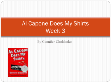 Al Capone Does My Shirts Week 3 By Gennifer Choldenko Vocabulary ledger - a book of account; a daybook or journal opponent –one that opposes another in battle, contest, controversy,or debate sarcastic - expressing a feeling of bitterness Vocabulary contraption – a mechanical device or gadget scowl – to express a frowning facial expression scoffing - mocking or laughing at Vocabulary terrace – a row of buildings erected on raised ground or on a sloping site attire – clothing, dress, or apparel endanger – to expose to harm, danger, or risk Vocabulary glared - expressed by staring angrily