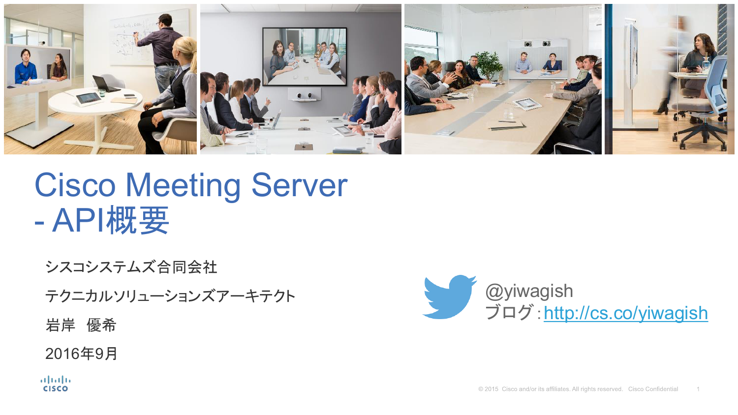 Cisco Meeting Server - API概要 シスコシステムズ合同会社 テクニカルソリューションズアーキテクト 岩岸 優希 2016年9月 @yiwagish ブログ:http://cs.co/yiwagish えー、なんでAPI なの? 開発者じゃないのに。。。。 API(アプリケーションんプログ ラミングインターフェース) 設定ツール API による設定の優位性 機能実装のスピード感 顧客体験の自由度 何ができるのか?というより、いつ必要なのか? • Spaceごとのデフォルトレイアウト • Webから変更可能 何ができるのか?というより、いつ必要なのか? • CMAでレイアウト • Web/アプリで変更可能 何ができるのか?というより、いつ必要なのか? • ビデオ端末からレイアウト変更 何ができるのか?というより、いつ必要なのか? • ビデオ端末からレイアウト変更 シスコ端末 + TelePresence Server or CMR Cloud • > アクティブコントロール (IX Protocol)で変更可能 • 2.0 未対応 何ができるのか?というより、いつ必要なのか? • ビデオ端末からレイアウト変更 シスコ端末 + TelePresence Server or CMR Cloud • > DTMF 2 / 8 で変更可能 • デフォルトでは Disable How can I change screen layouts using DTMF? https://kb.acano.com/content/33/257/en/how-can-i-change-screen-layoutsusing-dtmf.html Cisco Meeting Server API REST (Webの仕組みと同じ) HTMLの話 HTTPの話 RESTの話 Meeting Server /calls CMS XML XML XML Data Meeting Server RESTの中身 REST アクセスツール ブラウザのプラグインで”設定” 履歴が残るので Postmanが運用では おすすめ • Firefox Poster • Chrome Postman • Chrome Advanced Rest Client • APIガイドには Firefox Poster利用例 • DevNet ラーニングガイドにはChrome Postman入門ガイド多数 Firefox Poster (入門的に) Cisco Meeting Server API DTMFによるレイアウト変更 - 3 Step API ユーザの作成 DTMF Profile作成 Call Leg Profile作成 DTMFに対してのアクション 通話中のプロファイル System Profile に割り当て システムレベルのプロファイル ユーザの作成 API ユーザの作成 acano> user add apiuser api Please enter new password: Please enter new password again: Success Firefox-Poster利用 RESTの基本 : 情報の取得=ID情報 • POST : 新規設定=新規ID作成 • PUT:設定変更=IDに変更を加える • DELETE:設定削除=IDを削除 • GET DTMF Profile作成 POST Method DTMF Profile作成 https://URL/api/v1/dtmfProfiles 新規作成はPOST nextLayout=8 次のレイアウトは”8” 200 OK • Location • dtmfProfile IDをメモ DTMF Profile作成 PUT MethodでDTMF Profile更新 DTMF Profile作成 https://URL/api/v1/dtmfProfiles/ID 更新はPUT previousLayout=2 前のレイアウトは”2” GET Methodで確認 DTMF Profile作成 Call Leg Profile作成 callLegProfiles作成 https://URL/api/v1/callLegProfiles 新規作成はPOST changeLayoutAllowed=true レイアウト変更を有効に 200 OK • Location • CallLegProfile IDをメモ Call Leg Profile作成 PUT: システムプロファイル更新 System Profile に割り当て https://URL/api/v1/system/profiles システムプロファイル常にPUT callLegProfile=ID PUT: システムプロファイル更新 System Profile に割り当て https://URL/api/v1/system/profiles システムプロファイル常にPUT dtmfProfiles=ID 同じdtmfProfileで実装できるもの ミュート制御 録画 会議ロック 会議終了 • muteSelfAudio • unmuteAllNewAudio • unmuteSelfAudio • defaultMuteAllNewAudio • toggleMuteSelfAudio • muteAllNewAndAllExceptSelfAudio • muteAllExceptSelfAudio • • unmuteAllExceptSelfAudio unmuteAllNewAndAllExceptSelfAu dio • startRecording • lockCall • stopRecording • unlockCall • muteAllNewAudio • endCall APIリスト https://URL/api/v1/xxx • /accessQuery • /coSpaces • /callBrandingProfiles • dialTransforms • /callBridges • /directorySearchLocations • /calls • /dtmfProfiles • /callProfiles • /forwardingDialPlanRules • /callLegs • inboundDialPlanRules • /callLegProfiles • /ivrs • /coSpaceBulkParameterSets • /ivrBrandingProfiles • /coSpaceBulkSyncs • /ldapMappings APIリスト https://URL/api/v1/xxx • /ldapServers • /tenants • ldapSources • /turnServers • /ldapSyncs • /users • /outboundDialPlanRUles • /userProfiles • /participants • /webBridges • /recorders • /system/ APIが必要な機能 FAQ • How do I enforce encryption for a space? • https://kb.acano.com/content/10/70/en/how-do-i-enforce-encryption-for-aspace.html • Can I create multiple IVRs? • https://kb.acano.com/content/7/179/en/can-i-create-multiple-ivrs.html • Can members of a space control other participants' audio or video? • https://kb.acano.com/content/14/204/en/can-members-of-a-space-controlother-participants_-audio-or-video.html RESTは今後も必要になりますので。。。 developer.cisco.com Learning Lab https://learninglabs.cisco.com/lab/04-rest-01-overview-of-rest-apis/step/1