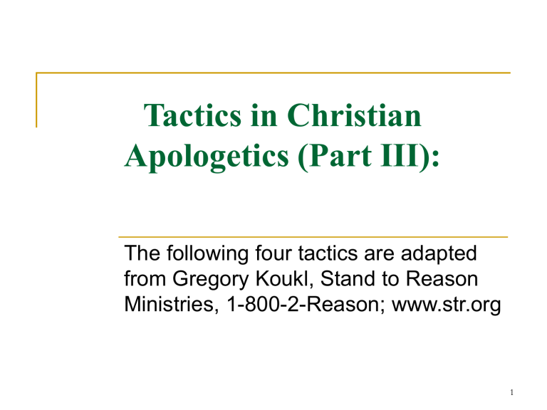 Tactics in Christian Apologetics (Part II)