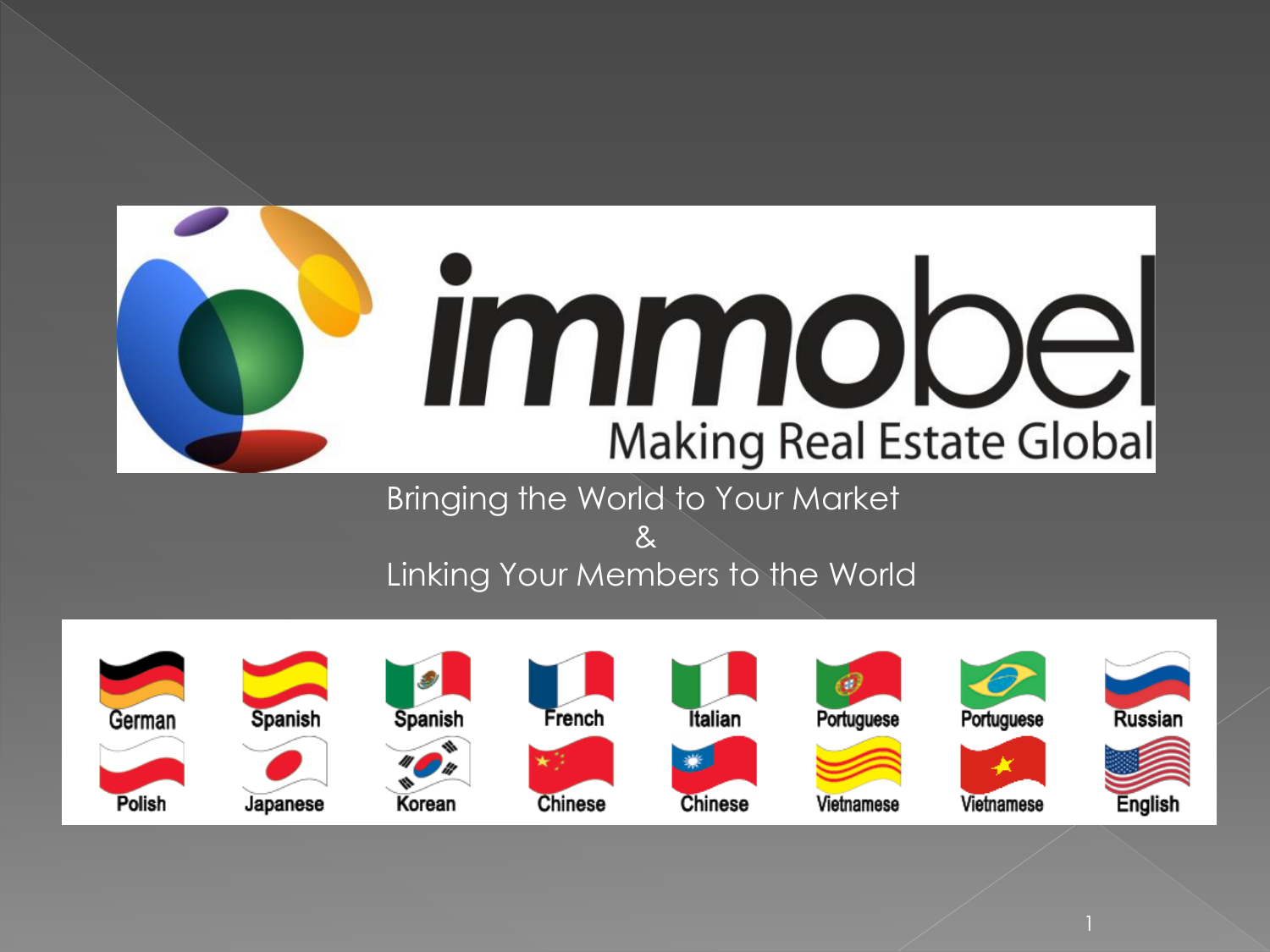 Bringing the World to Your Market & Linking Your Members to the World 1 Immobel Listing Search (IDX) --- Immobel pages… This can be accessed by going to Http://www.immobel.com/NTREISdemo 2 Easy Way to search for Listings…. Clicking On Search on the left. Featured Properties – Displays Listings, associated with Agent ID. Our Office Listings – Displays Listings, associated with Office ID. 3 Suggestions Box, Easy way to search all listing for one specific city. 4 Advanced Criteria and further ways to search…. 5 Property Results and showing on how to run a map search. 6 Map Search…. You can draw your own “grid”…triangle, box, etc… 7 Options to Save this Listings…. Email Listing to a Friend and Print Flyer. New options – “Share This” Social Media Options/ Providing ways to further even market the listings. 8 Full detail of listing and now including a “turntable” for photos 9 New Control Panel, admin functions for the website/page. Easy Navigation and “Quick Help” added to each section. 10 Control panel to edit/modify existing Immobel Listing Search (IDX) Video Tutorials added to help the agent setup the account. 11 Team Options now available!!!!! 12 Contact Information that will be displayed on the page. 13 Professional Information that can be filled out and automatically Translated to all of the languages that Immobel Supports. 14 New Styles / Templates to choose from!!! 15 Customize even further by adding your pictures for the selected style/template. PREVIEW option to see your pages, before the pages are alive to the internet. 16 Listing Customization options, here you can choose which listings are shown. Including, customization of property types and price ranges. 17 Language Options… Not all agents, may wish to display all supported languages. Here you can customize which languages are shown and which order. 18 Domain options and Language Bars to connect to other websites. 19 Advanced Options to even further customize the account and provide more traffic to the pages. 20 Client Contact Manger System – This works directly with the Immobel Listing Search (IDX), using Get Email Alerts, where client can sign up, with an email address and save a Search. Then receive automatic email notification. As the owner of the page, you are able to manage those. Also, this admin option, allows the agent to add their own clients and setup saved searches. Fully customizable, using our Email Alert Preferences. 21 New Listings Manager. Here, you can view all your listings, associated with your Agent ID. View all Listings that are connected via the IDX feed. Easy and great way to view listings…. 22 Referral Network – Our new platform to have agents connect with each other and share Referrals. 23 Help Desk > FAQs. Easy to use and follow for any common questions. Updated often!!!! 24 Help Desk > Videos… Easy to follow videos that can help agents setup and how to use the services to the fullest Extent! 25 Help Desk > Contact Us…. Easy to use and the best way to contact us for any questions or concerns about the account. All Support questions answered within 24 hours, excluding weekends. 26 Visit -- http://www.real-buzzpro.com/ for more information. 27 28 29 30 31 32 33 34 35 36 37
