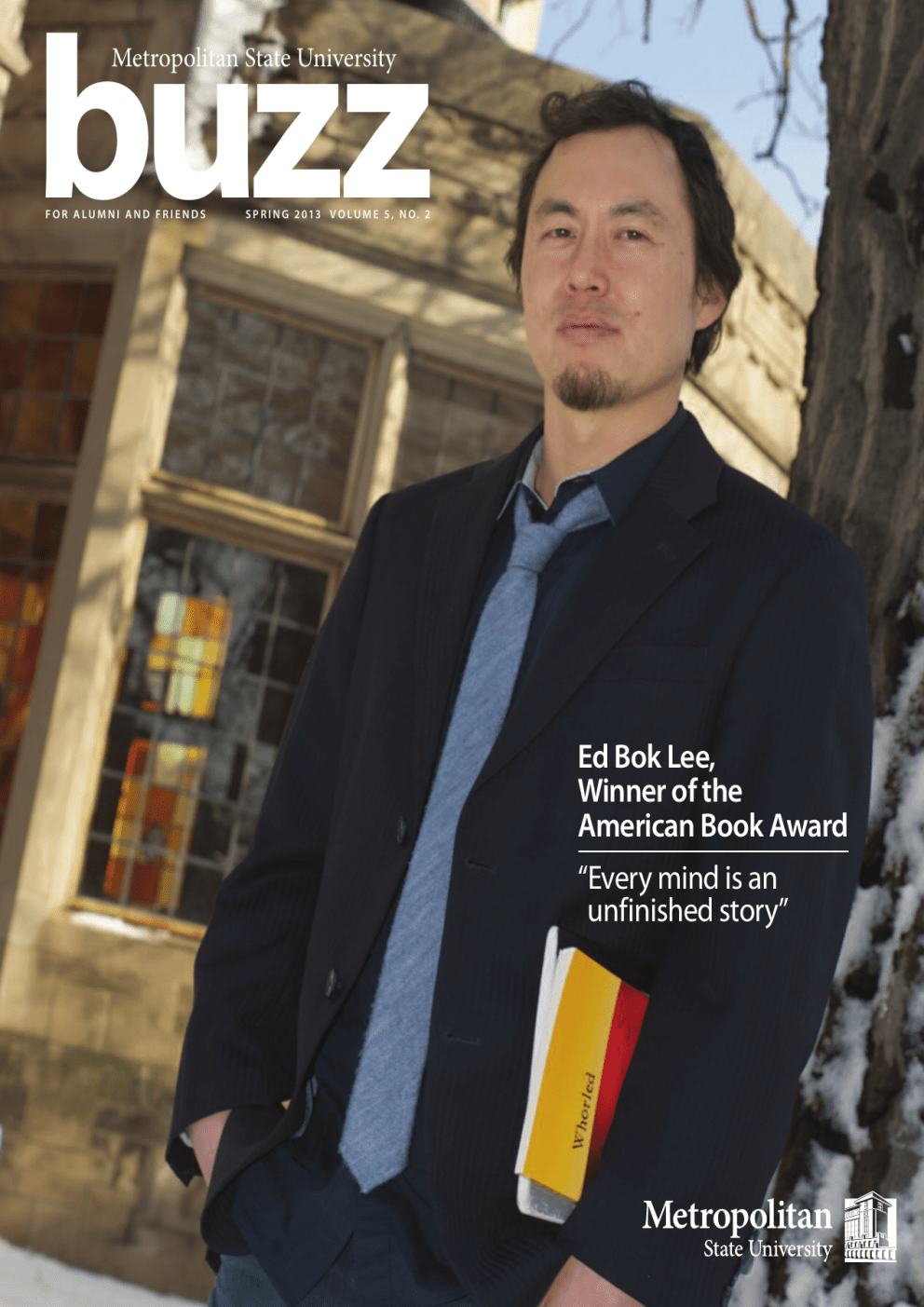 buzz Metropolitan State University FOR ALUMNI AND FRIENDS S P R I N G 2 0 13 V O L U M E 5 , N O . 2 Ed Bok Lee, Winner of the American Book Award “every mind is an unfinished story” Poppies I Watercolor Carol Lowe (’79) has painted with watercolor paints for more than 15 years. She studies at Ghost Ranch, New Mexico, with Pamona Hollanback and in Wisconsin with Karla Holman. A member of the Attic Artists for almost 10 years, she finds inspiration and support from other artists. Cover photo by Tom Roster ToM RoSTeR View From New Main Metropolitan State continues to grow in size, stature and structure. In December, Twin Cities Business ranked Metropolitan State University first in the state by enrollment growth. We graduated 1,214 students at our winter commencement, and this May we will celebrate our 35,000th graduate. We now serve more than 11,000 students a year, and our enrollments continue to grow at a steady, healthy pace. We are growing in stature as well. The American Council on Education—a prestigious professional association—recently published a report from the National Commission on Higher Education Attainment which cites Metropolitan State as a national model of excellence in giving adult learners the flexibility they need to complete their degrees. The Commission recommended that other universities and colleges follow Metropolitan State’s innovative lead in providing adult students with an accessible, affordable and truly extraordinary education, and it is most gratifying to see our model recognized as vital for America’s future. Metropolitan State University’s home campus, perched atop the scenic Dayton’s Bluff in Saint Paul, will grow as well over the next few years. A beautiful, state-of-the-art science education center—MnSCU’s top-ranked construction project for the whole state—will be built to house our rapidly growing science majors, undergraduate research and a new professional graduate degree. A Student Center will provide amenities for our busy adult learners as well as space for student organizations and activities, studying and group work. This summer we will open the truly amazing David Barton Reflective Garden and Community Labyrinth on the grounds just west of the library. I invite you to walk through the labyrinth and garden the next time you visit campus. Finally, this summer we will begin construction for a new parking ramp to meet the needs of a growing urban campus. To keep pace with all this growth, we have authorized 10 new faculty positions in biology, chemistry, criminal justice, alcohol and drug counseling, library science, management, nursing, political science and psychology. In an era when so many other universities are contracting, to be expanding in this fashion sends a message of vibrant energy and growth which will attract top talent, and I look forward to welcoming these new faculty in the fall. We also have begun new initiatives to more vigorously market the university, expand continuing education, and reach future students for whom Metropolitan State is “the perfect fit.” In the past year we undertook a diligent process to identify and acquire the facilities necessary to expand our service to and presence in the West Metro region. Our goal is to be able to offer our most popular majors in both the East Metro and the West Metro areas. Unfortunately, no appropriate site for a major campus was found at that time, so we continue to explore options. In the meantime, we will significantly expand our course offerings in the West Metro by partnering with Normandale Community College in Bloomington. We will offer both daytime and evening classes on the Normandale campus, including whole degreecompletion options. Finally, we continue to grow as a strong community of friends and colleagues. This spring I was delighted to join 45 other Metropolitan State faculty, staff, alumni and students for our annual “Metro at the Met” event. We enjoyed the Metropolitan Opera production of Rigoletto—broadcast in high definition and dolby sound—at the Marcus Oakdale Theatre. It is such fun to enjoy great opera, great fellowship, and popcorn or nachos, all at the same time. Next year, please join us for our next “Metro at the Met” event, sponsored by our Metropolitan State University Alumni Association. Thank you for your sustained interest in and support of Metropolitan State, America’s premier university for lifelong learning. Sincerely yours, Sue K. Hammersmith, President Metropolitan State University BUZZ 3 TAbLE oF CoNTENTS 3 View from New Main 6 10 14 18 26 Super Alumni Four Things About Four Things Finding Gems in the Rough What Are You Studying? VoLUMe 5 NUMBeR 2 SPRING 2013 Metropolitan State University BUZZ is published twice a year by Metropolitan State University, Alumni Relations office, University Planning and Advancement Division for alumni and friends of the university. Metropolitan State University is a member of the Minnesota State Colleges and Universities system. editor Vicki Lofquist Alumni Relations and Annual Giving Director Art Director Diane DeRosier Douglass (’05, ’09) Managing editor Susan Amos Palmer Publications/News Services Director Associate editors Maureen Acosta Darlene esko Matthew Spillum (’06) Contributing Writers Stephen Burgdorf (’10) Harvey Meyer Matthew Spillum (’06) Photographers Anne Hodson (’07) Tom Roster Assistants Chiara Marano Noriko Ramberg Lisa Ghylin (’11) Everything’s Going Swimmingly for Katie Koenig (’12) Correspondence should be sent to Alumni Relations, Metropolitan State University, 700 east Seventh Street, Saint Paul, MN 55106-5000. Phone: 651-793-1808, Fax: 651-793-1825 or e-mail [email protected]. An equal opportunity educator. FSC LOGO HERE ALUMNI ASSoCIATIoN Greetings! I want to share with you some ways we can help each other. Professional development is a key reason many earn their degrees at Metropolitan State. In that regard, alumni can be a reso