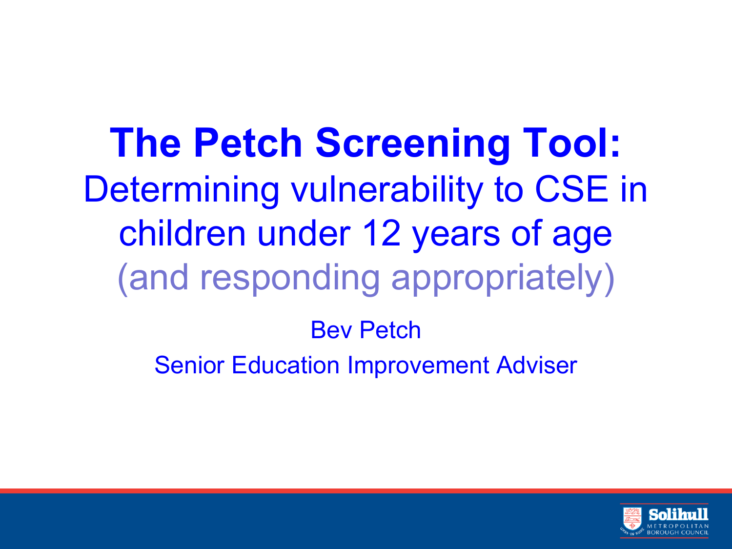 The Petch Screening Tool: Determining vulnerability to CSE in children under 12 years of age (and responding appropriately) Bev Petch Senior Education Improvement Adviser Aims of this session • To gain confidence in using the Petch Screening Tool where there are concerns about a child • To respond appropriately to support and safeguard younger children who are vulnerable to CSE • To understand the CSE pathways Purpose • Provides a framework for making a sound professional judgement about the level of vulnerability of a younger child, aged under-12, to CSE • Supports early help and intervention. • Early identification of low level CSE concerns reduces the chances of high level CSE concerns. Why? National: Barnardo’s ‘The biggest child protection issue for over 10s in this country…’ National • The Independent Inquiry into CSE in Rotherham 1997-2013, by Alexis Jay OBE (published August 2014) provided some of the impetus for this work: ‘Girls as young as 11 were raped by large numbers of male perpetrators’. Regional and local evidence of need • Over time, regional and local data sets have included a small number of children aged under 12. • Evidence of vulnerability to CSE emerging at time of transition from primary to secondary school for some children. • Early identification enables early intervention and support. Primary schools and prevention Key Stage 1 Key Stage 2 Early Years Foundation Key Stage Happy and safe relationships Vulnerable Pupils: identify and safeguard Parents CSE awareness raising for primary schools Existing screening tools (now for aged 12 and over) • Not precisely focused enough on indicators for this age group. • The current definitions of levels of CSE risk are less helpful for under 12s and could undermine professional judgements and responses to protect the child. • What may be a low-level indicator for a 15year old may translate to high levels of concern for a child aged 10 or 11. How does the Petch Screening Tool work? Format Organised into 3 sections : 1. Indicators 2. Vulnerability factors 3. Overall professional judgement & follow up actions With a focus on: • Behaviour and presentation • Connections and associations • Health • Family and parenting • Indicators are designated either amber or red, with red indicators presenting higher risk. • Red ‘alert indicators’ present a stronger indication of CSE risk (displayed as !), Key principles: The Petch Screening Tool • Language of vulnerability to CSE for u-12s Universal vulnerability (typical for age) = no current CSE risk Potentially vulnerable to CSE Vulnerable to CSE • Vulnerability beyond universal is always a concern for a child u-12 by virtue of age. • A MASH referral should always be made. Caution • The tool has not been designed to screen all children • It should only be used where there are specific concerns about a child that may relate to CSE Used differently, screening may lead to false positives… Professional judgement about vulnerability to CSE • • • • Evidence against a very small number of amber indicators is likely to lead to a professional judgement that the child is currently not at risk of CSE. A completed screening tool with evidence against a significant number of solely amber indicators would be likely to lead to a professional judgement of the child being potentially vulnerable to CSE. A completed screening tool with evidence against a combination of several red and amber indicators could lead to a professional judgement of either potentially vulnerable to CSE or vulnerable to CSE. Where the completed screening tool provides clear evidence against one or more of the red ‘alert indicators’ that present a stronger indication of CSE risk (displayed as !), the child would always be deemed to be vulnerable to CSE. Meet Sam, aged 10½ Meet Sam, aged 10½ • Sam loves spending time on the computer and has a social media account • Sam sometimes goes to the local park or McDonald’s after school with older sister (aged15) • Sam’s attendance at school has just slipped below 90% • Sam receives support from Solar for low level anxiety How concerned are you? How vulnerable to CSE is Sam? What would you do at this stage? • Sam is unusually agitated at school and is finding it difficult to concentrate on learning • Sam’s teacher reports several incidents involving Sam have been recorded in the behaviour log in the last few weeks • Mum reports that Sam is sharing pictures on social media ‘but they all do that don’t they?’ (No parental controls in place) • Attendance at school is becoming erratic. Two absences last week remain unexplained • A recent police input at LSCB CSE training highlighted public areas of concern that included the local park and McDonald’s How concerned are you? How vulnerable to CSE is Sam? What would you do at this stage? • Mum concedes that Sam’s behaviour has changed at home. Sam’s older sister has been ‘in trouble’ with the police recently • Mum says that she is not at home to supervise after school until about 9 pm because of her job. • Some children tell you that Sam has lots of grown up male ‘friends’ on social media • The local secondary school inform you that Sam’s older sister has been deemed to be at risk of CSE • Sam has a new smart phone • Sam has tried to abscond from school How concerned are you? How vulnerable to CSE is Sam? What would you do at this stage? Access to screening tools and CSE team contact details • Screening tools and FIB forms available via: http://www.solihulllscb.co.uk/practitionervolunteers/child-protection-procedures-19/toolbox-96.php • CSE email: [email protected] • Secure email account: [email protected] • Contact number: 0121 709 7000 Intelligence Sharing via FIB forms CSE pathways determine process • Being adapted to reflect 2 different screening tools • Over 12s - either pathway, dependent on risk l