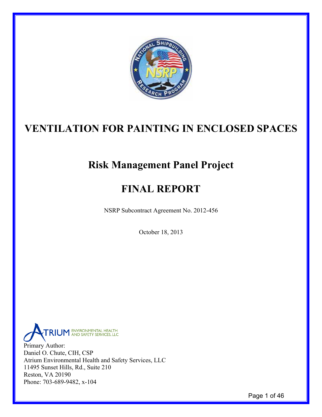 Field work was completed at four participating shipyard sites between October 2012 and June 2013. BAE Southeast,
