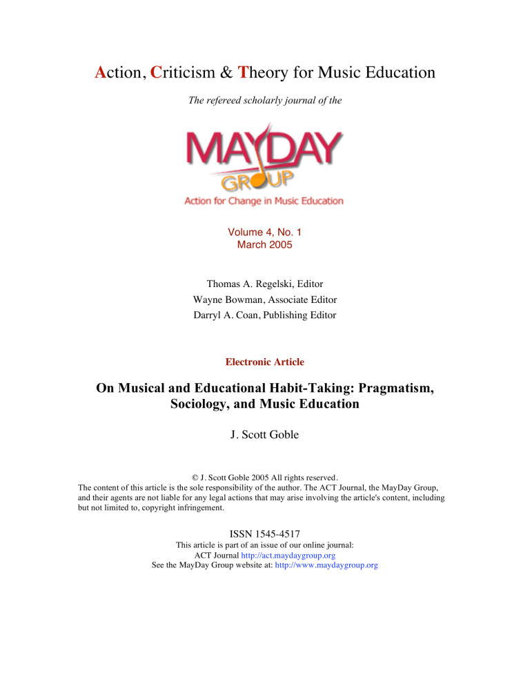 On musical and education habit-taking" pragmatism, sociology, and