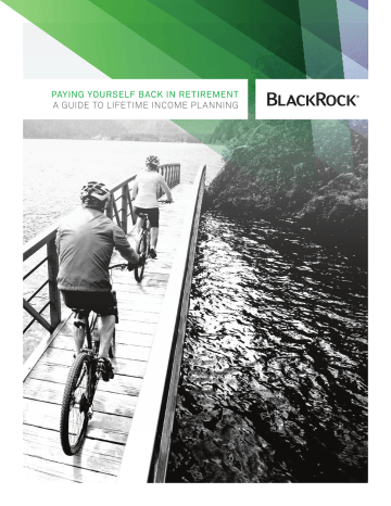PAYING YOURSELF BACK IN RETIREMENT A Guide to Lifetime Income Planning Lifetime Income Planning in a New World of Investing Retirement. It’s the ultimate good news/bad news scenario. First, the good news: Thanks to advances in medical science and better personal health habits, you will almost certainly spend more years enjoying the fruits of your labor than any generation prior. The bad news: Most Americans’ retirement nest eggs will fall woefully short of funding that longer life span. Consider this: While the average American spends roughly $8,000 per year on healthcare expenditures,1 or $160,000 over a 20-year retirement, the average 401(k) balance is less than half of that at under $75,000.2 In an era where retiring comfortably on Social Security and a company pension is practically impossible, the importance of personal retirement savings cannot be overstated. Today and in the future, most retirees will need to withdraw from their investment portfolios to generate the income they require throughout their golden years. To achieve this end, retirement planning must be a lifelong vocation—but many investors have interrupted that noble mission in these times of low interest rates and high market volatility, unwittingly jeopardizing their financial futures. Truth be told, it is a new world of investing, and it does require new ways of thinking about retirement investments. However, the chief tenet of retirement investing has not changed—you are more likely to achieve the retirement you envision if you prepare in advance. This guide is designed to help you consider ways to prepare now to make your retirement income last. As always, we encourage you to work with your financial professional to develop a personal investment plan suited to your specific retirement goals. 1 OECD Health Data: Health expenditure and financing, OECD Health Statistics (database). 2 Fidelity Investments, as of June 2012. For more information on BlackRock® retirement income solutions, contact your financial professional. Not FDIC Insured • May Lose Value • No Bank Guarantee [2] PAY I N G Y O U R S E L F B A C K I N R E T I R E M E N T Assessing Your Income Needs Identify Your Retirement Goals The first step in determining how much income you will need in retirement is to pinpoint your goals. Your basic financial goals may include having the ability to pay your bills for the rest of your life, maintaining your lifestyle, establishing a cushion for unforeseen expenses, maximizing your estate or leaving a legacy to heirs and/or a charity. Also factor in other goals that come with financial costs, such as funding advanced education, starting a business or providing for extended family. A recent survey of near and recent retirees found that just one in four had a formal written plan for managing income, assets and expenses in retirement.3 3 LIMRA, “Retirement Income Tradeoffs,” 2009. Itemize Your Anticipated Expenses Once you determine what you want to do in retirement, you can begin estimating the income required to fund those ambitions. Of course, not all expenses are created equal. Categorizing your anticipated expenses can help you to prioritize and compartmentalize your retirement income planning. } Essential expenses include housing, utilities, food, clothing and basic healthcare. These are expenses that must be paid. } Discretionary expenses include travel, entertainment and gifts. Discretionary expenses can usually be forgone or reduced if necessary. Know which of your expenses you consider essential, even if someone else may not agree. } One-time expenses are exactly as the name implies. These may include a child’s wedding or a grandchild’s college tuition or a multitude of other items. Within these categories, your expenses can be defined even further. For example, you may have both ongoing essential expenses (e.g., property taxes, utilities) and fixed essential expenses that last only a certain number of years (e.g., a mortgage). Following are a few common considerations that may help you arrive at a more complete and accurate projection of expenses: } How many years are remaining on your mortgage? } Do you plan on moving or downsizing your primary residence? } How will your health insurance premiums change once you retire? } D o you have all the insurance you need or should you budget for additional premiums (e.g., long-term care insurance)? } W ill you spend more on travel or hobbies once you have more time to devote to them? [3] Identifying Your Income Sources Inventory Existing Income Sources Once you have determined your retirement income needs, take stock of the income sources you have now or anticipate having in the future. } Will you continue to work either full- or part-time? }Do you have guaranteed income sources (e.g., Social Security, pensions, annuities)? }Can you derive income from investment properties? Once you have identified your income sources, determine how long the income stream from each will last (e.g., a few years, your lifetime, your spouse’s lifetime). You should also understand what type of income stream each will provide (e.g., fixed, inflation-adjusted). Identify Investment Assets Most people will find that their anticipated annual expenses are higher than their expected annual income. This income gap often can be closed by working with your financial professional to create a withdrawal plan for your investment portfolio. Before doing so, however, it is important to inventory all of your investment assets. These may include company retirement plans, individual retirement accounts (IRAs), taxable investments, deferred annuities, real estate and cash value life insurance. Your financial professional can help you consolidate these resources (where possible) and develop a plan that best employs them to fill your income gap. Your income gap is the additional income you need to fund your expenses above and beyond the income you will receive from existing sources. D