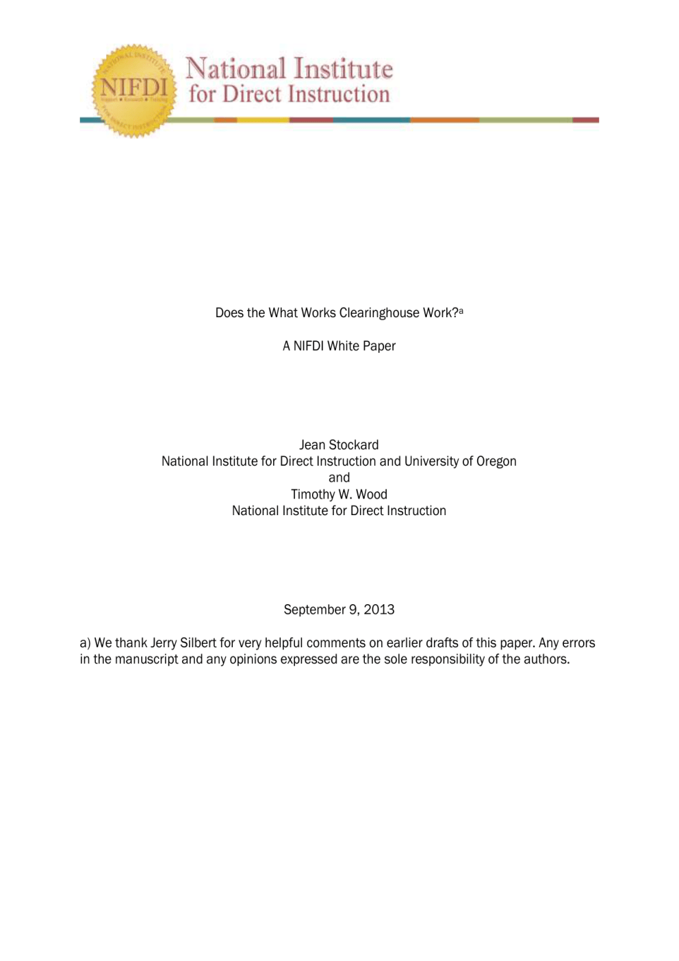 Does the What Works Clearinghouse Work?a A NIFDI White Paper