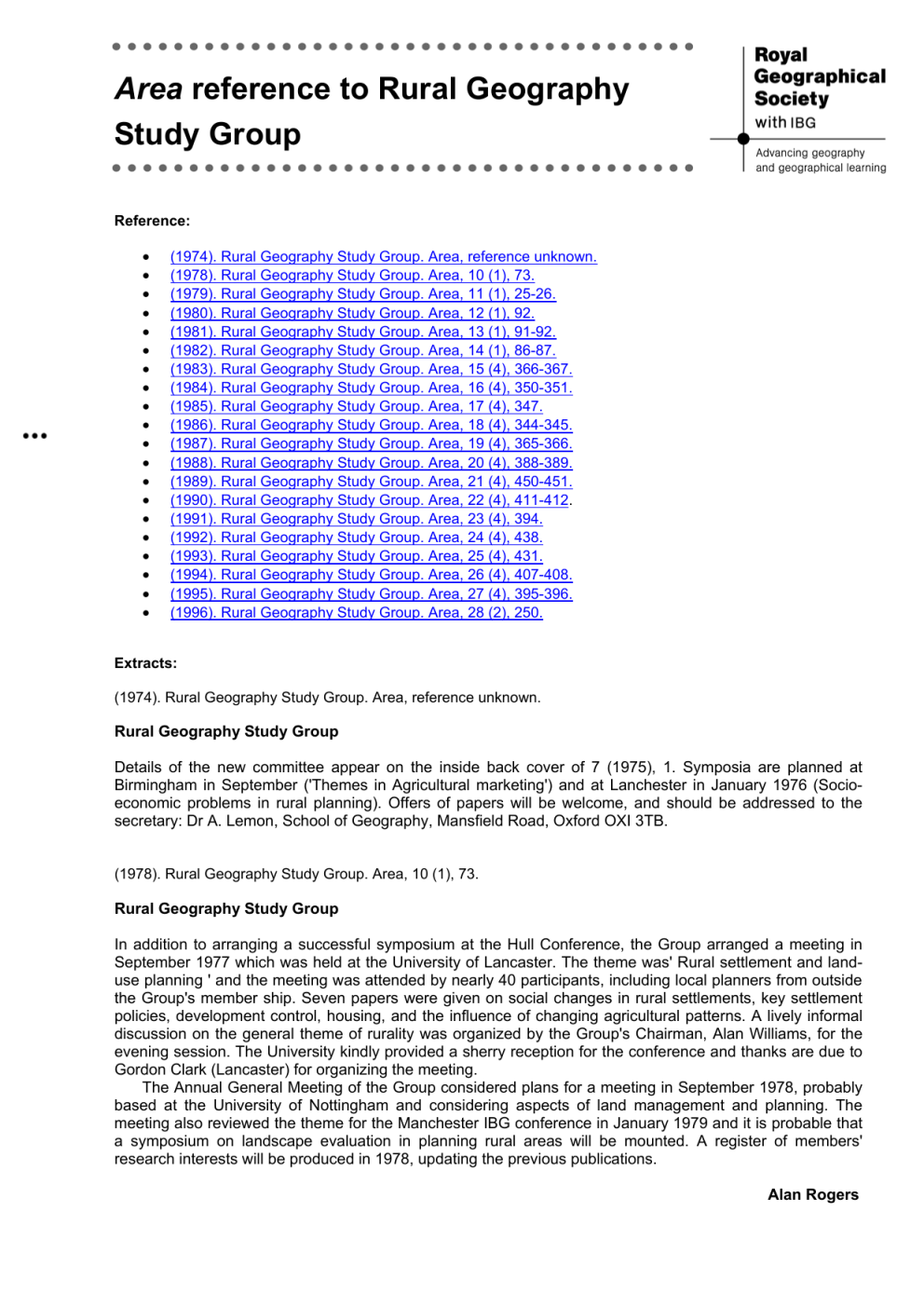 (1974). Rural Geography Study Group. Area, reference unknown.