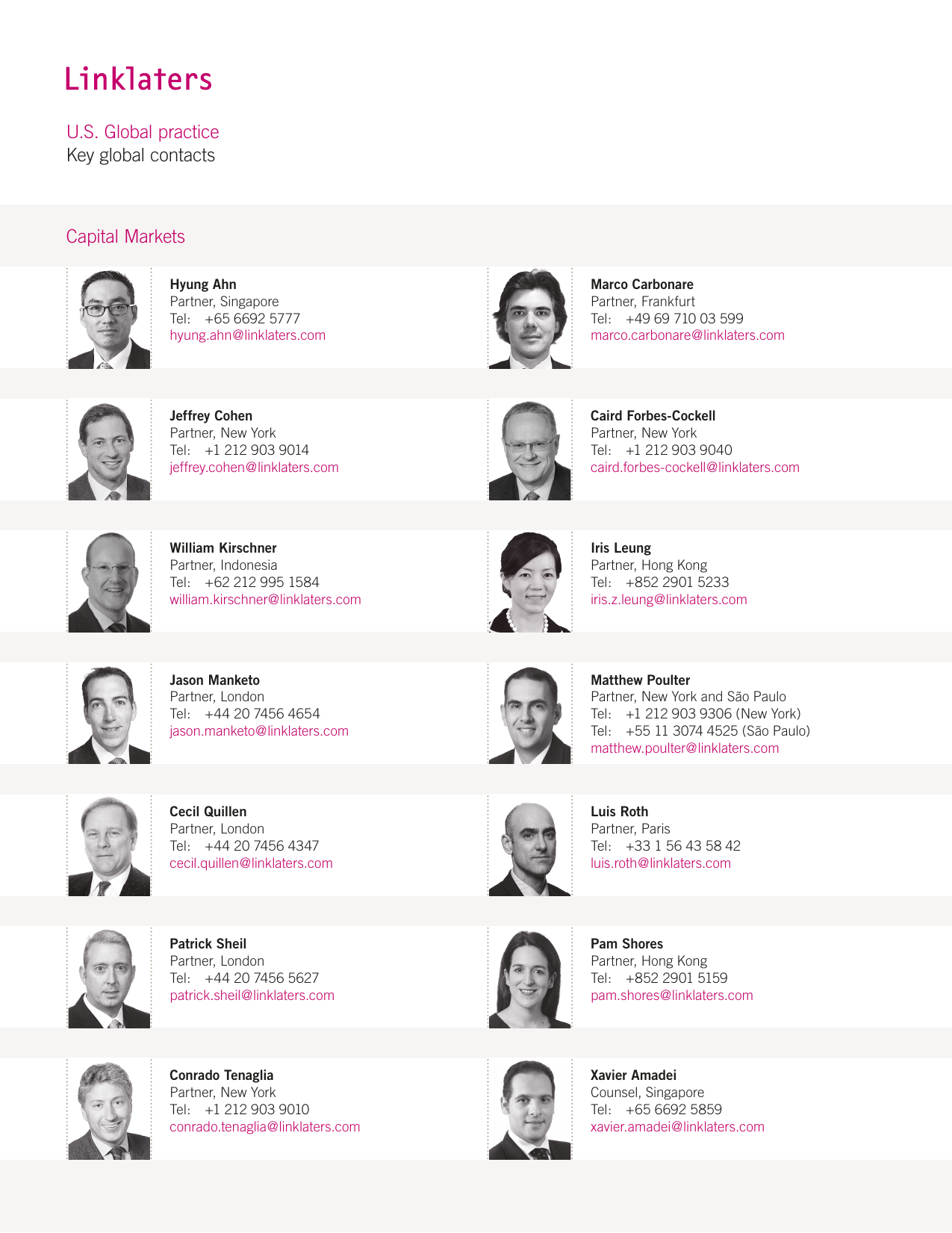 US Global practice Key global contacts Capital Markets