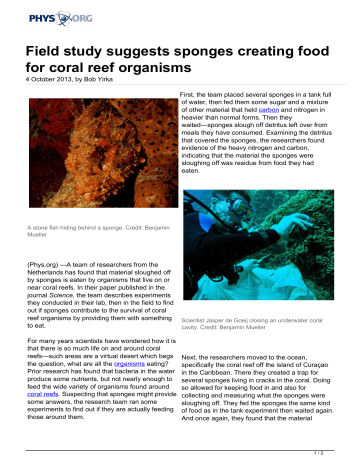 Field study suggests sponges creating food for coral reef organisms