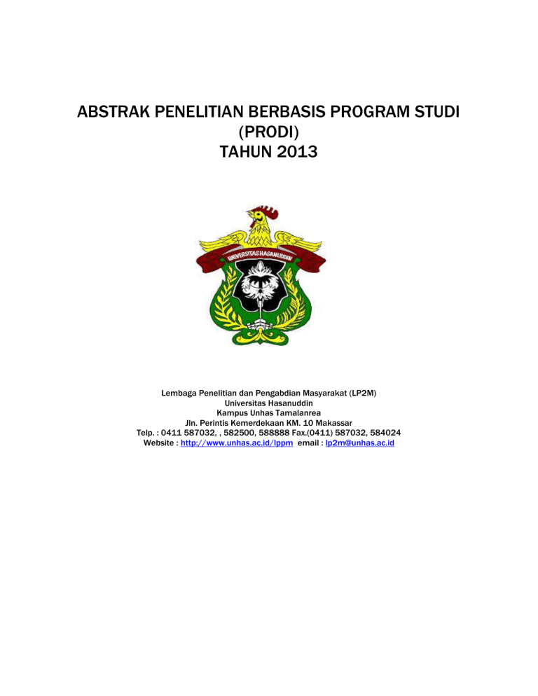 ABSTRAK PENELITIAN BERBASIS PROGRAM STUDI (PRODI) TAHUN 2013 Lembaga Penelitian dan Pengabdian Masyarakat (LP2M) Universitas Hasanuddin Kampus Unhas Tamalanrea Jln. Perintis Kemerdekaan KM. 10 Makassar Telp. : 0411 587032, , 582500, 588888 Fax.(0411) 587032, 584024 Website : http://www.unhas.ac.id/lppm email : [email protected] BIDANG ILMU AGROKOMPLEKS 1. Bidang Kajian Ilmu Pertanian MODEL MULTI KRITERIA PENGGUNAAN LAHAN PADA DAERAH TANGKAPAN HUJAN (DTH) UNTUK MENURUNKAN LAJU SEDIMENTASI PADA WADUK SUMBER AIR UNTUK PERTANIAN Ahmad Munir, Suhardi, Haerani dan Olly Sanny Hutabarat Program Studi/Jurusan/Fakultas Tema : Ketahanan Pangan Abstract Jeneberang Basin is situated in South Sulawesi, Indonesia. In the recent years, the function of this basin can not be performed optimally in maintaining sustainability hydrologic function of Jeneberang dam. Therefore, in order to maintain the hydrologic function of the dam, it is necessary to formulate suitable landuse at upstream of the river basin. This research is objected to formulate policy for the suitable landuse, in term of reducing sedimentation rate in Jeneberang dam. This study employed RUSLE (Revised Universal Soil Loss Equation) for calculating erosion as well as sedimentation rate. Fuzzy Multi Attribute Decision Making (FMADM) and Analytic Hierarchy Process (AHP) which are combined with Geographical Information System (GIS), for obtaining weighting factor that ware used to formulate optimum landuse at the upstream. There are ten conservation alternatives were observed (natural mulch,plastic mulch, strip cropping, crop rotation, cover crops apllication, flough paralleled with contour, terracering, agroforestry, tree cultivation and regreening) by considering seven criterias (material availability, farmer knowledge, acceptance level of technology, supporting of institution, suitability of farming system, financial affordability, others criteria). The result of this study indicated that, the value of intersection vector of 0.799 is attributed to the conservation practice of crop rotation. By applying of FMADM, sedimentation rate can be reduced from 18.43 m3/km2/year to 4.63 m3/km2/year. Keywords: GIS, Fuzzy, landuse, river basin, sediment