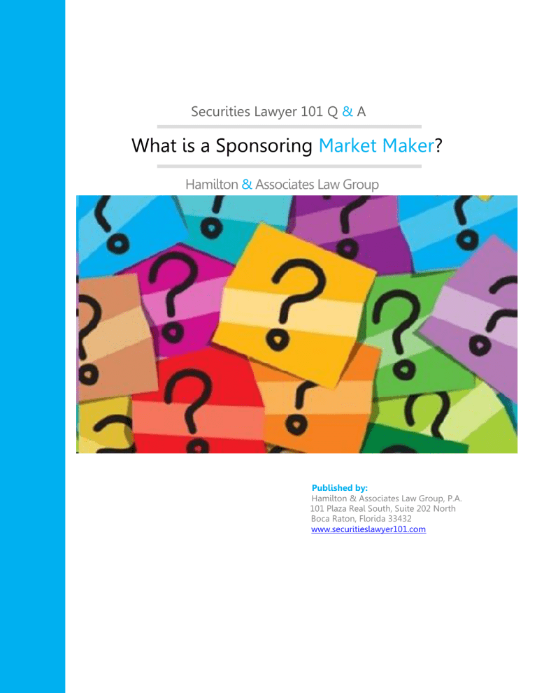 Securities Lawyer 101 Q & A What is a Sponsoring Market Maker? Hamilton & Associates Law Group Published by: Hamilton & Associates Law Group, P.A. 101 Plaza Real South, Suite 202 North Boca Raton, Florida 33432 www.securitieslawyer101.com What is a Sponsoring Market Maker? The last step in a going public transaction is for the company to receive a stock trading or ticker symbol from the Financial Industry Regulatory Authority (“FINRA”). For a company to obtain its ticker symbol, a sponsoring market maker (“Sponsoring Market Maker”) must sponsor the company’s application and submit a Form 211 to FINRA on the issuer’s behalf. Sponsoring Markets Makers have become one of the most important participants in the going public process because they are the only ones who can apply for a ticker symbol. Q. Can Sponsoring Market Makers Be Paid to Submit 211 Filings ? A. No. Sponsoring Market makers generally earn money by buying stock at a lower price than the price at which they sell it, or selling the stock at a higher price than they purchase it back. Despite the amount of work involved in the 211 process, FINRA prohibits market makers from charging issuers fees for filing a Form 211. Q. Do Sponsoring Market Makers have to be registered with FINRA? A. Yes. A Sponsoring Market Maker must be a FINRA registered broker-dealer firm that accepts the risk of holding a certain number of shares of a particular security in order to facilitate trading in that security. Broker-dealers must register with FINRA to act as a Market Maker of a security. Q. Who regulates Sponsoring Market Makers? A. Sponsoring Market Maker activities are regulated by the Securities and Exchange Commission (“SEC”) as well as by FINRA. FINRA oversees registration, education and testing of market makers, brokerdealers and registered representatives. FINRA rules governing Sponsoring Market Makers in going public transactions involve a variety of criteria. Hamilton & Associates Law Group, P.A. 101 Plaza Real South, Suite 202 N Boca Raton, FL 33432 Telephone: (561) 416-8956 www.securitieslawyer101.com Q. What is SEC Rule 15c2-11? A. SEC Rule 15c2-11 requires that current public information be made available to investors. This information is initially provided in going public transactions by the Sponsoring Market Maker when it submits a Form 211 and 15c2-11 application with FINRA for a ticker symbol assignment. FINRA and SEC Rule 15c2-11 require that the Sponsoring Market Maker have a reasonable basis for believing that the information provided by the company in its Form 211 is accurate and from reliable sources. As such, the Sponsoring Market Maker’s preparation of proper disclosures is critical to the going public transaction. Q. Does FINRA Comment on Form 211’s? A. Yes. In a going public transaction, a Sponsoring Market Maker must submit a Form 211 application to FINRA to apply for the company’s trading symbol, and it must respond to FINRA’s comments to the application. Once FINRA is satisfied that the disclosures meet the requirements of SEC Rule 15c211, a trading symbol is assigned and the Sponsoring Market Maker can quote the company’s securities. Q. What is the Form 211 Exclusivity Period for Sponsoring Market Makers? A. For the first 30 days after a ticker symbol assignment in a going public transaction, only the Sponsoring Market Maker who filed the Form 211 can publish quotes of the company’s All Rights Reserved 2 securities. Thereafter, other market makers can publish their own quotes. Q. Will the Sponsoring Market Maker Require a Company to Have a Certain Number of Stockholders? A. In order to obtain FINRA approval of the Form 211, the Company going public must have enough shareholders for the sponsoring market maker to demonstrate that an active trading market can be established. This means that prior to filing a Form 211 the company should have at least 20 nonaffiliate shareholders who paid cash consideration for their shares, and have owned those shares for at least 12 months. The private company seeking to go public should have at least 1 million shares outstanding, of which at least 250,000 are free trading shares. For further information about Sponsoring Market Makers, please contact Brenda Hamilton, Securities Attorney at 101 Plaza Real South, Suite 202 North, Boca Raton, FL, (561) 416-8956, or by email at [email protected]. This securities law Q & A is provided as a general or informational service to clients and friends of Hamilton & Associates Law Group, P.A. and should not be construed as, and does not constitute legal advice on any specific matter, nor does this message create an attorney-client relationship. Please note that prior results discussed herein do not guarantee similar outcomes. Hamilton & Associates Law Group, P.A. 101 Plaza Real South, Suite 202 N Boca Raton, FL 33432 Telephone: (561) 416-8956 www.securitieslawyer101.com All Rights Reserved 3