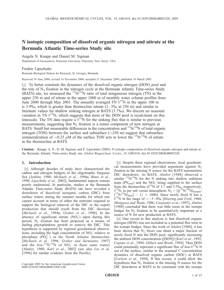 (BATS) site, we measured the 15N/14N ratio of total nongaseous nitrogen (TN) in the