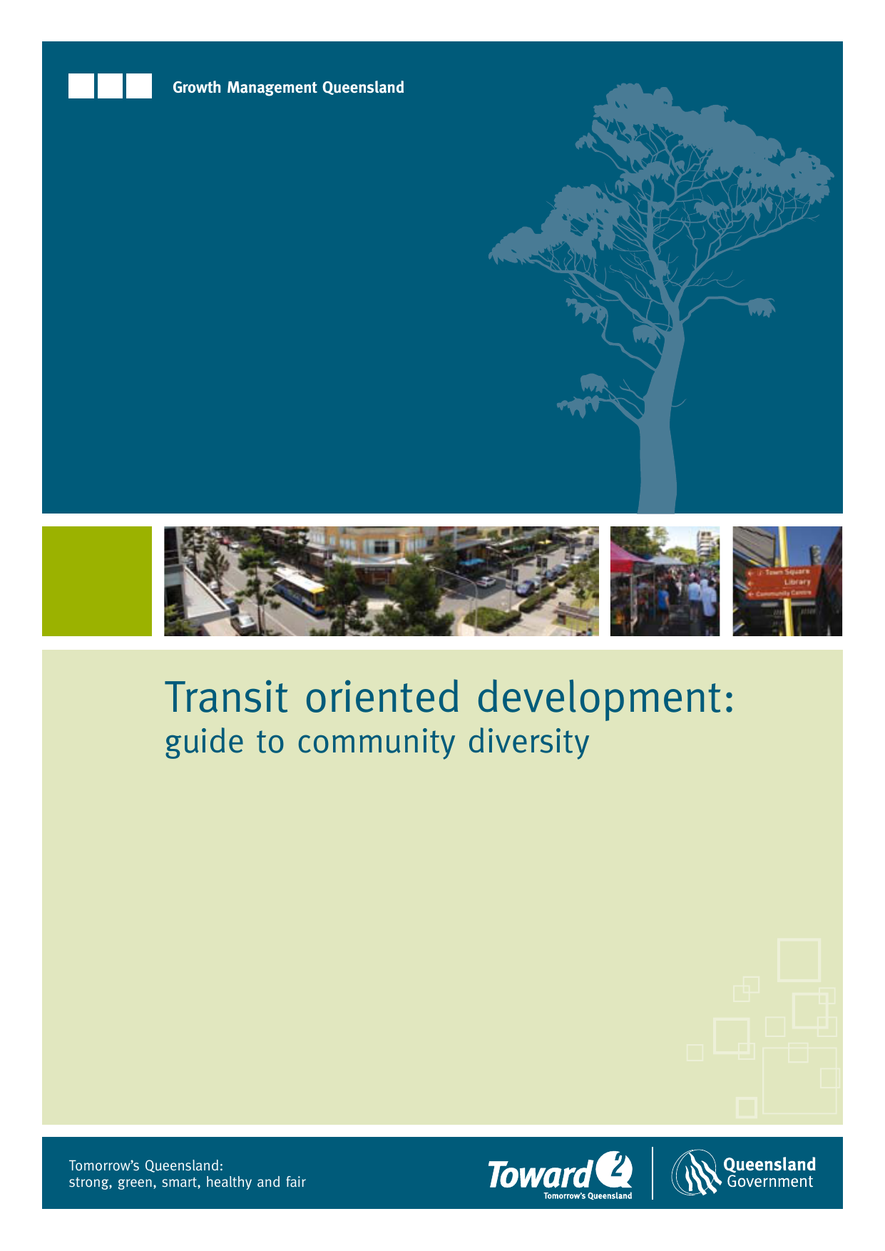 Growth Management Queensland Transit oriented development: guide to community diversity Tomorrow’s Queensland: strong, green, smart, healthy and fair Transit oriented development: guide to community diversity Looking forward. Delivering now. The Department of Infrastructure and Planning leads a coordinated Queensland Government approach to planning, infrastructure and development across the state. The State Government, through Growth Management Queensland, is leading the way with a focused approach to growth management, to help shape tomorrow’s Queensland. ©The State of Queensland. Published by the Department of Infrastructure and Planning, October 2010, 100 George Street, Brisbane QLD 4000. The Queensland Government supports and encourages the dissemination and exchange of information. However, copyright protects this publication. The State of Queensland has no objection to this material being reproduced, made available online or electronically but only if it is recognised as the owner of the copyright and this material remains unaltered. Copyright inquiries about this publication should be directed to the departments legal services division via email [email protected] or in writing to PO Box 15168, City East, Queensland 4002. The Queensland Government is committed to providing accessible services to Queenslanders of all cultural and linguistic backgrounds. If you have difficulty understanding this publication and need a translator, please call the Translating and Interpreting Service (TIS National) on 131 450 and ask them to telephone the Queensland Department of Infrastructure and Planning on 07 3227 8548. Disclaimer: While every care has been taken in preparing this publication, the State of Queensland accepts no responsibility for decisions or actions taken as a result of any data, information, statement or advice, express or implied, contained within. To the best of our knowledge the content was correct at the time of publishing. Any references to legislation are an interpretation of the law. They are to be used as a guide only. The information in this publication is general and does not take into account individual circumstances or situations. Where appropriate, independent legal advice should be sought. ISBN: 978-0-9805449-6-1 SIP_0092_.01_Pu B Contents Executive summary........................................................................................................................................... 1 1 Introduction.....................................................................................................................................................3 2 What is transit oriented development?.....................................................................................................4 3 Why community diversity?..........................................................................................................................5 3.1 Why does it matter?........................................................................................................ 5 3.2 What is community diversity?......................................................................................... 7 3.3 Who are we planning for?.............................................................................................. 7 3.4 Social planning principles.............................................................................................. 9 4 Strategies for achieving community diversity........................................................................................ 10 4.1 How to achieve community diversity.............................................................................10 4.2 Urban form and land use.............................................................................................. 11 4.3 Housing.........................................................................................................................13 4.4 Access to diverse jobs...................................................................................................18 4.5 Retail diversity...............................................................................................................19 4.6 Social infrastructure...................................................................................................... 20 4.7 Access and movement...................................................................................................21 4.8 Open space, recreation and the public domain........................................................... 22 4.9 Community engagement and collaboration................................................................. 24 4.10 Community and cultural development........................................................................ 25 5 Evaluating outcomes.................................................................................................................................. 27 5.1 Why evaluate outcomes?.............................................................................................. 27 5.2 How and when to evaluate.......................................................................................... 27 5.3 A monitoring and evaluation framework...................................................................... 28 Appendix: Evaluation criteria for community diversity............................................................................ 30 Glossary........................................................................................................................................................... 34 References....................................................................................................................................................... 39 Acknowledgements........................................................................................................................................ 40 Transit oriented development: guide to community diversity Exec