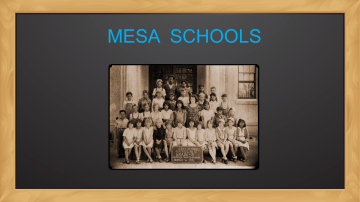 MESA SCHOOLS From Brush to Adobe, Mesa’s First Schools The first school was built in Mesa in 1879. The brush shed was presided over by teacher Mary Ursula Pomeroy. Children were required to attend school unless it was necessary for them to work in the fields. Many students attended school until they were 12 to 14 years old. By In 1882, the first permanent school was an adobe building constructed at the corner of Center and Second Ave. in order to meet the demands of a growing population. By 1883 when Mesa was incorporated, more than 300 people had settled the area. Mary Ursula Pomeroy Mesa’s First School Crops, Shelter, Schools In 1890 the first Brick School, Lincoln School, was constructed at the site of the Adobe School. The Lincoln School was later demolished on 1920 as other schools soon followed. Two schools are now historic sites, the Lehi and Irving Schools. Lehi School 1902 Quick Fact: It was not uncommon for children to do their morning farm chores before getting ready for school. There were cows to be milked and animals to be cleaned, fed and watered. Could you image doing all this before going to school today? The 1918 Flu Epidemic By the fall of 1918, the Spanish Flu epidemic that had caused widespread death across the world, reached Mesa. It struck quickly, often killing its victims within hours. To halt the epidemic, Mesa closed churches, theaters, and schools. During the epidemic, the Franklin School was converted to an emergency hospital. For those who could pay for hospital care, the cost was $15 per week. Lincoln School Quick Fact: The Flu epidemic killed more people than the Great War, known today as World War I (WWI), at somewhere between 20 and 40 million people. It has been cited as the most devastating epidemic in recorded world history. Segregated Schools Daniel Webster School Booker T. Washington School Like other communities across America, Mesa had segregated schools. In the early days of Mesa, any student could attend any Mesa school. This began to change in the 1910’s as the minority population began to grow. In 1911, the Daniel Webster School was originally established to teach students of Hispanic decent and later included African-American students, however the groups were separated into different classrooms. In 1920, Mesa built the Booker T. Washington School for AfricanAmerican students the school was located in the Washington Park area just north of downtown. Although elementary schools were segregated, Mesa Jr. High and Mesa High were never segregated. Mesa began to integrate schools years before the U.S. Supreme Court ruled hat segregated schools were unconstitutional in 1954. Veora Johnson Veora Johnson teaching at Washington School, ca, 1950 Quick Fact: In 1927, Veora Johnson became the first AfricanAmerican teacher in Mesa and the first black administrator in Arizona. She also served as the curriculum and primary education consultant for the City. Active in the civic life of the community, She won numerous awards including Mesa’s Citizen of the Year. After retiring in 1974, Johnson was honored by the naming of the Veora Johnson Elementary School in Mesa. In the 1800’s and early 1900’s the school teacher would walk to school from a farm where she was staying with a family or drive out from a nearby town in a horse and buggy. It was the teacher’s responsibility to prepare the classroom and get a fire going in the stove before the day began. Mesa’s First High School The Rabbetts, Mesa High School precision marching team. The first high school classes in Mesa began in 1899. Mesa Union High School (Old Main) was built in 1908. It was Mesa’s only high school for nearly 60 years. The school was a gathering place for the community. Mesa was devastated when the school caught fire and burned to the ground in 1967. It was rebuilt at its current location in East Mesa. The school was known for its marching squad, the Rabbettes. The group of 100 young women marched, roped, and twirled their way across the state through from 1937-1974. Quick Fact: Mesa High Schools Mascot is a Jackrabbit, their motto is “Carry On” and their school colors are purple and gold. Mesa’s School System Today Today, Mesa boasts 56 elementary schools, three junior high schools, six high schools, and serves 69,000 students, it is the largest, in terms of student enrollment, unified school district in Arizona. Quick Fact: Mesa Public Schools are nationally recognized for student achievement in academics, sports, creative and performing arts, and career and technical programs. GreatSchools.org named MPS a top-10 district with the best public schools among big cities nationwide. Mesa Public Schools has been named the No. 1 district for graduation rates among the nation’s 50 largest districts. College Town Once a sleepy agriculture town, Mesa has evolved into becoming the 37th largest City in America. The City has made a conscious decision to become an educational boomtown. Over the past two years alone, the City has added four liberal arts colleges to the downtown area including Benedictine, Westminister, Wilkes, and Albright Universities. Along with Mesa Community College, Arizona State Ploytechnic, and A.T. Still University, Mesa now boasts the most college educational choices in the Valley. Aerial view of Mesa Community College from Southern and Dobson. MCC Photo For more information please visit the Mesa Historical Museum website at http://www.mesamuseum.org