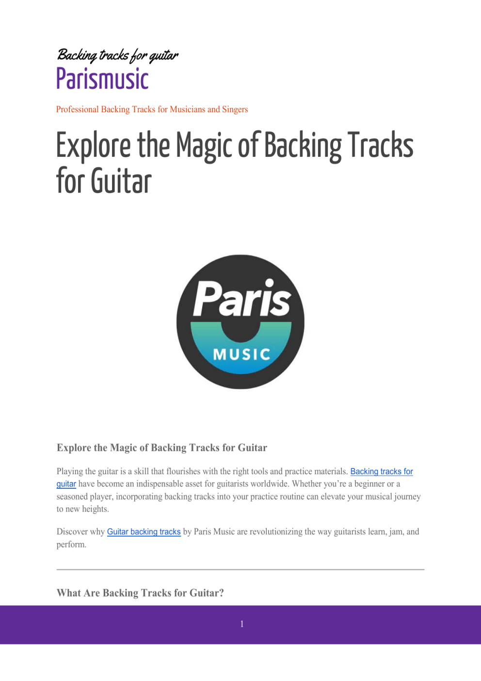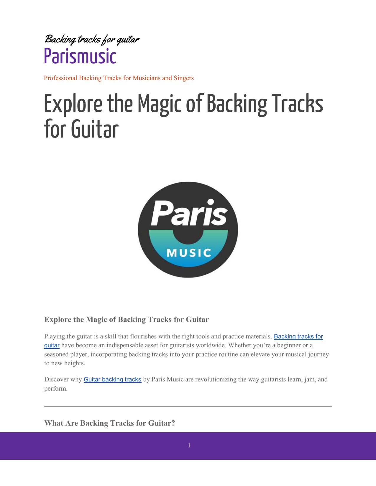 Backing tracks for guitar Parismusic Professional Backing Tracks for Musicians and Singers Explore the Magic of Backing Tracks for Guitar Explore the Magic of Backing Tracks for Guitar Playing the guitar is a skill that flourishes with the right tools and practice materials. Backing tracks for guitar have become an indispensable asset for guitarists worldwide. Whether you’re a beginner or a seasoned player, incorporating backing tracks into your practice routine can elevate your musical journey to new heights. Discover why Guitar backing tracks by Paris Music are revolutionizing the way guitarists learn, jam, and perform. What Are Backing Tracks for Guitar? 1 Backing tracks are pre-recorded accompaniments designed to provide a musical background for guitarists. They allow players to practice improvisation, solos, and rhythm sections without the need for a full band. Why Use Backing Tracks for Guitar Practice? 1. 2. 3. 4. Improved Timing: Playing along with backing tracks helps you stay in sync with the beat. Better Improvisation: Experiment with scales and modes in real-time. Performance Simulation: Feel like you're playing in a live band setting. Flexibility: Choose tracks that match your preferred style or skill level. The Power of Backing Tracks for Guitarists For guitarists, backing tracks are more than practice tools; they’re gateways to creativity. With Backing tracks by Paris Mus, you can dive into various genres, tempos, and moods to refine your skills and expand your repertoire. How Paris Music Stands Out Paris Music is renowned for creating high-quality backing tracks that cater to all guitarists. Here’s why they’re the go-to choice: ● ● ● ● Professional Quality: Each track is crafted with studio-grade precision. Wide Selection: From rock and blues to jazz and funk, Paris Music offers something for everyone. Customizable Options: Adjust the tempo or key to suit your needs. Easy Accessibility: Download your favorite tracks directly from their website. Visit their collection here: https://www.parismusic.co.uk/ Genres Covered by Paris Music’s Guitar Backing Tracks 1. Blues Backing Tracks: Perfect for mastering those soulful bends and pentatonic scales. 2. Rock Backing Tracks: Amp up your power chords and shredding techniques. 3. Jazz Backing Tracks: Explore complex chord progressions and modal improvisation. 2 4. Funk Backing Tracks: Get groovy with syncopated rhythms and funky licks. Benefits of Using Paris Music Backing Tracks 1. Boost Creativity: Explore unique chord changes and progressions. 2. Enhance Soloing Skills: Practice over versatile chord structures. 3. Learn Dynamics: Improve your ability to play soft or loud, depending on the track. Beginner Guitar Backing Tracks Starting out as a guitarist can be intimidating. Paris Music offers beginner-friendly backing tracks to help new players build confidence and hone their skills. Advanced Guitar Backing Tracks For seasoned players, Paris Music provides complex tracks with intricate progressions and dynamic arrangements. Test your limits and push your skills further. Practice Makes Perfect With consistent practice using backing tracks for guitar, you’ll notice significant improvements in your technique, timing, and confidence. Jam Like a Pro Even if you don’t have a band, you can experience the thrill of live jamming. Paris Music’s backing tracks simulate the feel of playing alongside professional musicians. Solo Like a Rockstar 3 Want to nail that epic solo? Backing tracks are the perfect tool to practice improvisation and experiment with different scales. Paris Music: A Guitarist’s Best Friend Guitarists around the globe trust Paris Music for their guitar backing track needs. With a library that caters to every skill level and genre, they are redefining practice routines. Backing Tracks for Performances Performers can also use backing tracks during live shows. Paris Music offers performance-grade tracks that ensure seamless integration into any gig. Learning New Styles Experimenting with backing tracks from different genres helps you learn new playing styles and techniques. Paris Music’s diverse library is ideal for exploring. Affordable Access to Quality Paris Music ensures that their high-quality backing tracks are accessible to everyone at reasonable prices. How to Choose the Right Backing Tracks 1. Skill Level: Choose tracks that align with your playing ability. 2. Genre Preference: Pick tracks in your favorite style for enjoyable practice. 3. Goals: Decide whether you’re focusing on rhythm, solos, or improvisation. Transform Your Practice Routine 4 Incorporating Paris Music’s Backing tracks for guitarists into your routine can make practice sessions more engaging and productive. Perfect for All Guitar Enthusiasts Whether you’re a hobbyist or a professional, Paris Music’s backing tracks provide endless opportunities to grow as a guitarist. Why Guitarists Love Paris Music Musicians praise Paris Music for their attention to detail and commitment to quality. With thousands of satisfied customers, their reputation speaks for itself. Expand Your Musical Horizons Paris Music’s backing tracks are not just for practice; they’re a gateway to exploring and mastering different genres and techniques. Hassle-Free Downloads Downloading tracks from https://www.parismusic.co.uk/ is quick and easy. Start jamming within minutes! Master Rhythm and Timing Playing along with professionally designed backing tracks enhances your rhythm and timing significantly. Backing Tracks for Composition Composers can also use backing tracks as inspiration for creating new melodies and harmonies. 5 The Ultimate Guitarist Toolkit Every guitarist needs a solid collection of backing tracks to practice and perform. Paris Music has you covered. Why Wait? Start Practicing Today! Take your guitar playing to the next level with Paris Music’s exceptional backing tracks. Hashtags to Connect #BackingTracksForGuitar #GuitarBa