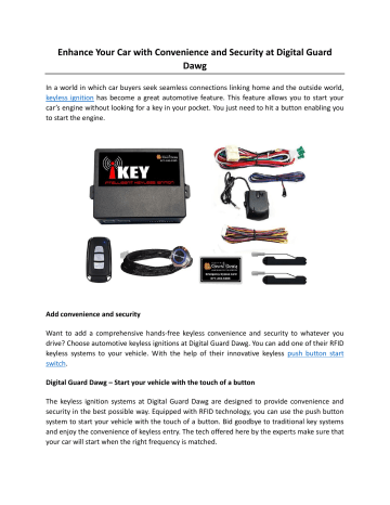 Enhance Your Car with Convenience and Security at Digital Guard Dawg In a world in which car buyers seek seamless connections linking home and the outside world, keyless ignition has become a great automotive feature. This feature allows you to start your car’s engine without looking for a key in your pocket. You just need to hit a button enabling you to start the engine. Add convenience and security Want to add a comprehensive hands-free keyless convenience and security to whatever you drive? Choose automotive keyless ignitions at Digital Guard Dawg. You can add one of their RFID keyless systems to your vehicle. With the help of their innovative keyless push button start switch. Digital Guard Dawg – Start your vehicle with the touch of a button The keyless ignition systems at Digital Guard Dawg are designed to provide convenience and security in the best possible way. Equipped with RFID technology, you can use the push button system to start your vehicle with the touch of a button. Bid goodbye to traditional key systems and enjoy the convenience of keyless entry. The tech offered here by the experts make sure that your car will start when the right frequency is matched. Top-notch choice for your car By introducing RFID keyless systems, Digital Guard Dawg has revolutionized how drivers interact with their vehicles. Their keyless ignition systems and start button are designed for convenience and reliability, making them stand out. Being the top-notch choice for car restorations and custom applications, the professionals offer solutions with a perfect balance of security and simplicity. No unauthorized break-ins The keyless ignition system offered by Digital Guard Dawg allows the prohibition of any unauthorized break-ins. As your vehicle will sense the signal from the designated fob, it is difficult to get it started otherwise. Besides, you don’t have to worry about the metal key being copied or any mechanical steering column being forced. In other words, you can ensure an enhanced safety and security of your vehicle. It's time to upgrade! Are you still driving the car with a traditional ignition switch? It’s time to upgrade it to push button start button. Just browse through the products offered by Digital Guard Dawg and enjoy a genuine sense of security. Their products consist of start kits, keyless ignition systems, and anti-theft devices for vehicles, and they can be your trusted partners in vehicle security. Get in touch by visiting https://www.digitalguarddawg.com/ Original Source: https://bit.ly/3XojQsf