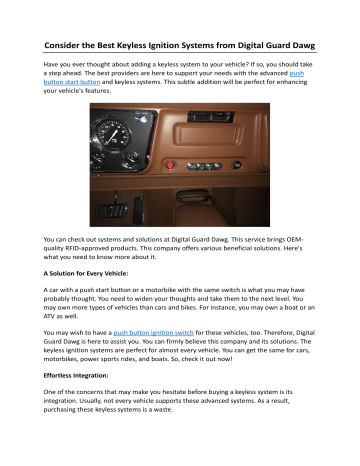 Consider the Best Keyless Ignition Systems from Digital Guard Dawg