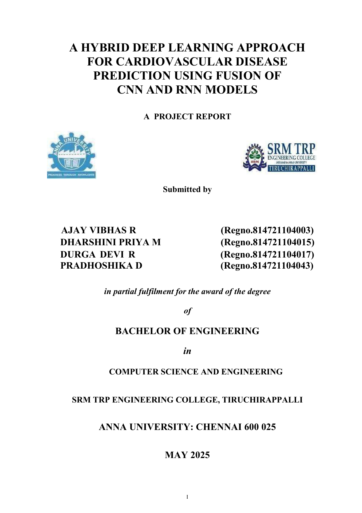 Certified that this project report “A Hybrid Deep Learning Approach for