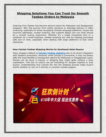 Shipping Solutions You Can Trust for Smooth Taobao Orders to Malaysia