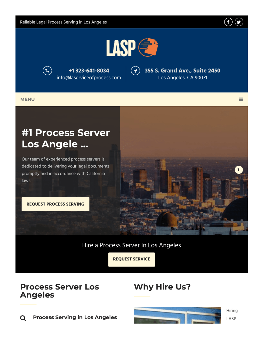 Reliable Legal Process Serving in Los Angeles +1 323-641-8034 [email protected] 355 S. Grand Ave., Suite 2450 Los Angeles, CA 90071 MENU #1 Process Server Los Angele … Our team of experienced process servers is dedicated to delivering your legal documents 1 promptly and in accordance with California laws REQUEST PROCESS SERVING Hire a Process Server In Los Angeles REQUEST SERVICE Process Server Los Angeles Process Serving in Los Angeles Why Hire Us? Hiring LASP means LASP – Your Trusted Process Servers in Los hiring a Angeles, CA When legal documents must be delivered promptly and accurately, LA Service of Process (LASP) is the name professionals trust. We specialize in process serving across Los Angeles, Beverly Hills, Santa Monica, Burbank, and surrounding areas, ensuring that legal papers are served in full compliance with California laws. In a fast-paced legal environment, delays or improper service can jeopardize cases. That’s why law firms, attorneys, and private clients rely on LASP for dependable, efficient, and court-admissible process serving. Los Angeles is one of the most populous and legally active regions in the United States. With thousands of legal disputes, court cases, and legal notifications occurring daily, proper service of process is not just a requirement—it's a vital part of the justice system. Whether you’re initiating a lawsuit, filing for divorce, or serving a subpoena, you need reliable and legal service of dependable partner for your legal support needs. When you work with us, you’ll receive: Legal & Court-Compliant Service – We follow all process carried out by experienced professionals. rules and statutes for process service in California. That’s where LA Service of Process comes in. We instant tracking and delivery confirmations. make sure your legal documents are delivered on time, accurately, and in full compliance with California law. Real-Time Status Updates – Stay informed with Same-Day & Rush Delivery Options – For urgent legal matters, we move quickly and efficiently. Proof of Service & Affidavit Documentation – Filed properly and delivered promptly. Skip Tracing & Difficult-to-Serve Assistance – For What is Process Serving LA? evasive individuals, we go the extra mile. Process serving is the official delivery of legal documents such as summons, complaints, subpoenas, restraining orders, small claims, and eviction notices to individuals or entities involved in a legal proceeding. At LASP, our licensed process servers ensure every document is served efficiently and within the parameters of California’s legal standards. Our Process Serving Solutions Include: Service of Summons & Complaints Subpoena Delivery (Witness, Records, Deposition) Small Claims Court Paper Service Family Law Documents (Divorce, Child Custody) Eviction Notices / Unlawful Detainers For years, LA Service of Process has been the trusted name in Los Angeles legal support services, helping attorneys and businesses meet critical deadlines and maintain the integrity of Restraining Orders Stakeouts & Difficult Serves Skip Tracing Services Nationwide Service Coordination their legal cases. REQUEST SERVICE NOW Whether you're an attorney needing repeat services, a landlord issuing eviction notices, or a private individual needing legal documents served discreetly, LA Service of Process is the trusted name in Los Angeles process serving. Process Serving Solutions in Los Angeles of Service Summons & Complaints Subpoena Delivery Subpoenas are time- sensitive legal documents Small Claims Court Paper Service Filing a small claims Proper service of summons that require immediate and lawsuit? The process step in initiating a legal Service of Process, we notification to the Process, we ensure it’s subpoenas for witness that missed or improperly appearances, and records delay court proceedings or preparing for a civil, That’s why we provide our experienced team court-compliant service subpoenas are served in and surrounding areas. law. We handle delivery to individual, or corporate hospitals, government documents directly to the institutions with involved, documenting Each subpoena is professional servers are documentation, including procedure and ensure submission to the courts. verifiable proof of service. tight deadlines and handle that your documents are discretion, urgency, and full compliance with all legal team stays on and complaints is the first compliant handling. At LA action, and at LA Service of specialize in delivering done right. We understand testimony, deposition served documents can production. Whether you're even jeopardize your case. criminal, or family law case, prompt, accurate, and ensures that your throughout Los Angeles accordance with California Whether you’re a law firm, individuals, businesses, client, we serve legal entities, and other defendant or party professionalism and care. every step. Our accompanied by detailed trained in California’s civil proof of service, for every serve includes a Our clients trust us to meet With LASP, you can trust sensitive legal matters with delivered efficiently and in precision. With LASP, your legal requirements. schedule and in control. Family Law Eviction Notices / begins with proper defendant—and that’s where LA Service of Process comes in. We specialize in serving small claims court documents such as Plaintiff’s Claims and Orders to Go to Small Claims Court. Whether you’re suing for unpaid rent, breach of contract, or personal damages, our servers ensure documents are delivered accurately and within the time limits required by California law. We assist both individuals and businesses in properly executing service, reducing delays and legal mishaps. Every service includes a detailed proof of service for court submission. Don’t risk your case getting dismissed due to improper notice—trust LASP for reliable small claims process serving across Los Angeles County. Restraining Orders Document