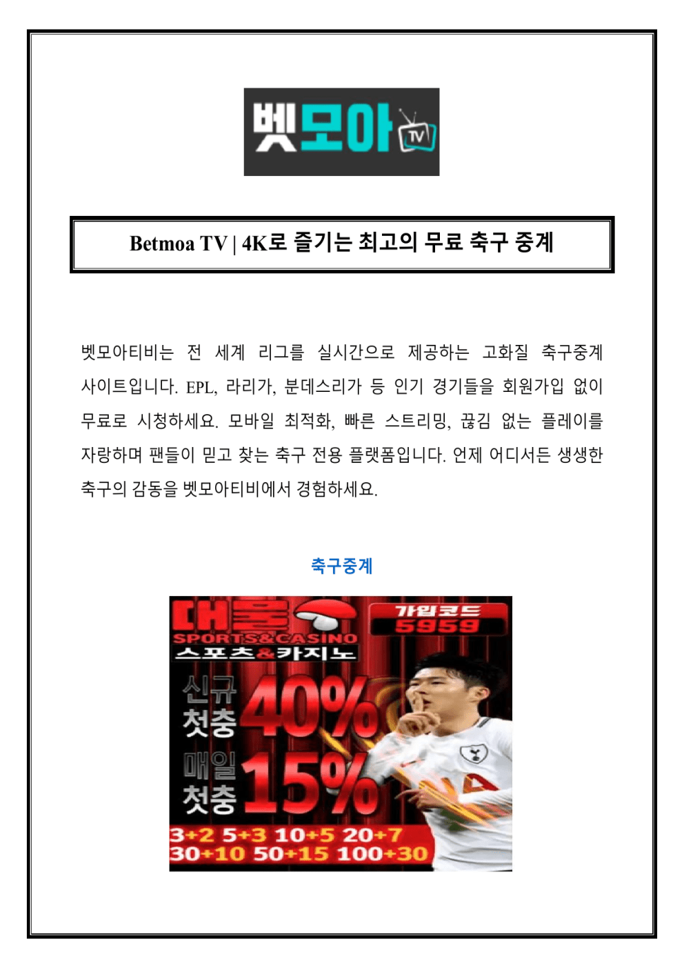 Betmoa TV | 4K로 즐기는 최고의 무료 축구 중계