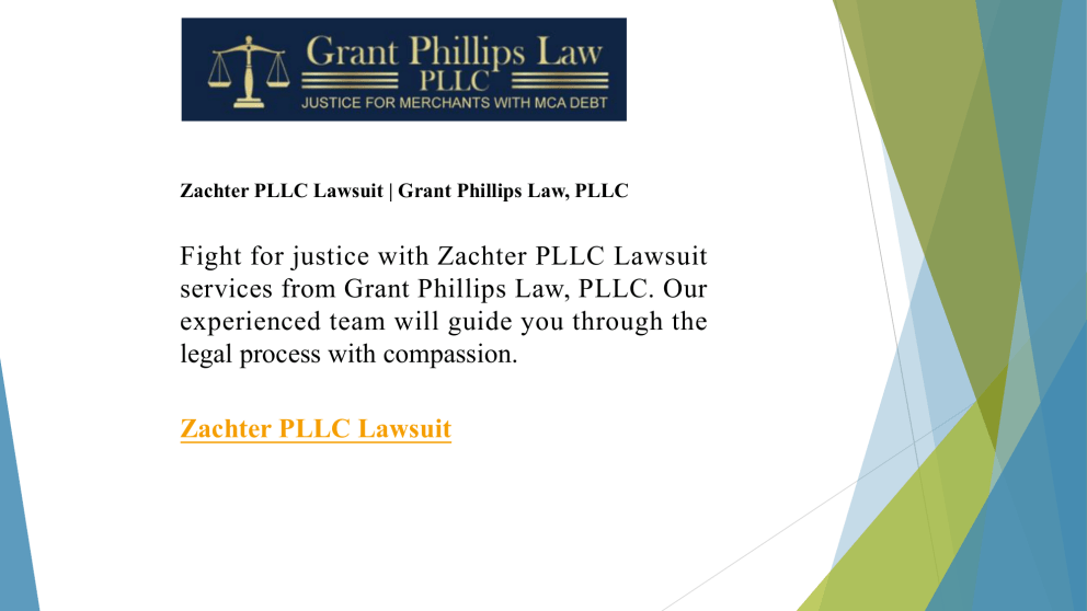 Zachter PLLC Lawsuit | Grant Phillips Law, PLLC Fight for justice with Zachter PLLC Lawsuit services from Grant Phillips Law, PLLC. Our experienced team will guide you through the legal process with compassion. Zachter PLLC Lawsuit About us The law firm of Grant Phillips Law do not practice in any other area of the law and is 100% devoted to the defense of businesses and guarantors facing hardship with their Merchant Cash Advance debt and to protecting merchants and businesses from litigious funders, their collection attorneys, MCA fraud and other predatory lending instruments. Contact us Grant Phillips Law, PLLC [email protected] 670 Long Beach Boulevard Long Beach New York 11561 United States (516) 670-5165 Thank you