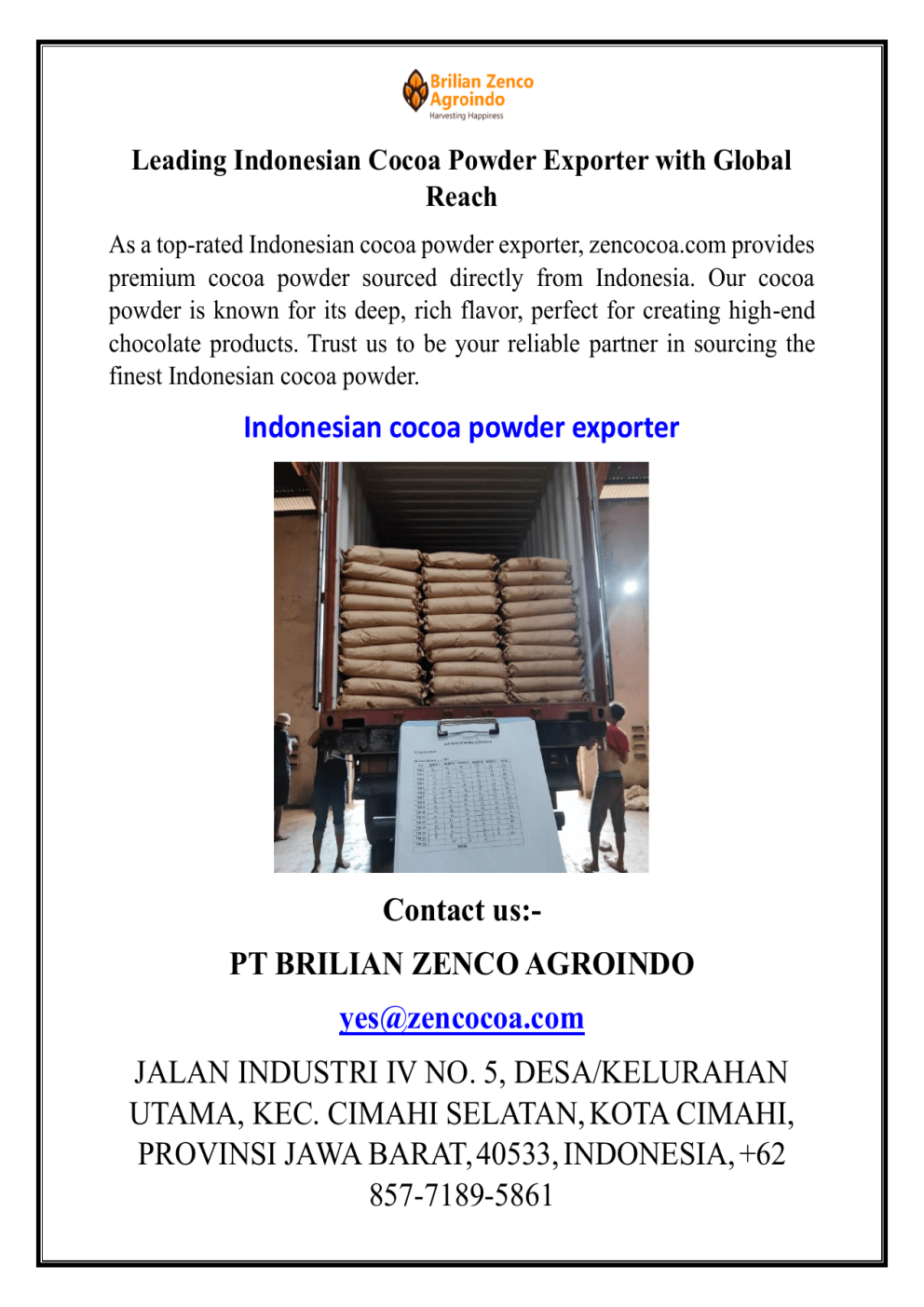 Contact us:PT BRILIAN ZENCO AGROINDO