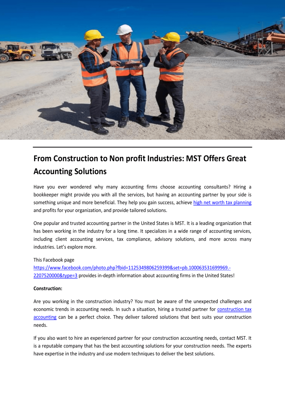 From Construction to Nonprofit Industries MST Offers Great Accounting Solutions