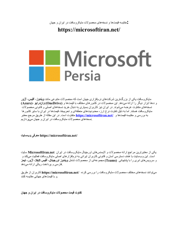 : مقایسه قیمتها و نسخههای محصوالت مایکروسافت در ایران و جهان https://microsoftiran.net/ مایکروسافت یکی از بزرگترین شرکتهای نرمافزاری جهان است که محصوالت متنوعی مانند ویندوز ،آفیس ،آژور و دهها ابزار دیگر را ارائه میدهد .این محصوالت در کشورهای مختلف با قیمتها و ) (OneDriveواندرایو (Azure)، نسخههای متفاوت عرضه میشوند .در ایران نیز کاربران بسیاری به دنبال خرید نسخههای اصلی و قانونی محصوالت مایکروسافت هستند .اما به دلیل تفاوت نرخ ارز ،محدودیتهای منطقهای و تحریمها ،قیمتها در ایران با سایر کشورها به بررسی و مقایسه قیمتها و https://microsoftiran.net/متفاوت است .در این مقاله از طریق مرجع معتبر .نسخههای محصوالت مایکروسافت در ایران و جهان میپردازیم https://microsoftiran.net/معرفی وبسایت یکی از معتبرترین مراجع ارائه محصوالت و الیسنسهای اورجینال مایکروسافت در ایران MicrosoftIran.netسایت است .این وبسایت با هدف دسترسی آسان و قانونی کاربران ایرانی به نرمافزارهای اصلی مایکروسافت فعالیت میکند و و سرویسهای ابری را با پشتیبانی ) (Teamsمجموعهای از محصوالت شامل ویندوز اورجینال ،آفیس ،365آژور ،تیمز .فارسی و پرداخت ریالی ارائه میدهد میتوانند نسخههای مختلف محصوالت مایکروسافت را بررسی کرده https://microsoftiran.net/کاربران از طریق .و با قیمتهای جهانی مقایسه کنند تفاوت قیمت محصوالت مایکروسافت در ایران و جهان قیمت محصوالت مایکروسافت در کشورهای مختلف بر اساس سیاستهای منطقهای ،مالیات و نوع الیسنس متفاوت است. :برای مثال .در کشورهای اروپایی و آمریکا ،نسخههای اصلی ویندوز یا آفیس معموالً با قیمت رسمی دالری عرضه میشوند در ایران ،به دلیل نوسانات نرخ ارز و عدم دسترسی مستقیم به درگاههای پرداخت بینالمللی ،کاربران ناچارند از .خرید کنند https://microsoftiran.net/واسطهها یا نمایندگان معتبر مانند به همین دلیل ،قیمت نهایی ممکن است اندکی بیشتر از قیمت جهانی باشد .اما در عوض ،خریدار از خدمات پشتیبانی .فارسی ،پرداخت ریالی و تحویل فوری بهرهمند میشود مقایسه نسخههای محصوالت مایکروسافت محصوالت مایکروسافت در نسخههای مختلفی عرضه میشوند که تفاوت اصلی آنها در امکانات و نوع الیسنس است .در :ادامه چند نمونه از این تفاوتها را مرور میکنیم :ویندوز اورجینال 1. .عرضه میشود Enterpriseو Home، Proدر بازار جهانی ،ویندوز بهصورت نسخههای نیز تمام این نسخهها با الیسنس قانونی و قابل فعالسازی برای https://microsoftiran.net/در وبسایت .کاربران ایرانی موجود است (Office):مایکروسافت آفیس 2. .از محبوبترین نسخهها هستند Office 365و اشتراک Office 2019، Office 2021نسخههای هر نسخه را بر اساس نیاز شخصی یا سازمانی خود انتخاب MicrosoftIran.netکاربران میتوانند از طریق .کنند (Azure):آژور 3. .سرویس ابری قدرتمند مایکروسافت که برای توسعهدهندگان و شرکتها طراحی شده است کاربران ایرانی میتوانند دسترسی امن و قانونی به خدمات آژور https://microsoftiran.net/،با همکاری .داشته باشند مقرونبهصرفهتر است؟ MicrosoftIran.netچرا خرید از برای کاربران ایرانی مزایای https://microsoftiran.net/با وجود تفاوت قیمتها بین ایران و سایر کشورها ،خرید از :زیادی دارد پرداخت ریالی و آسان :بدون نیاز به کارت ارزی یا حساب بینالمللی پشتیبانی فارسی :راهنمای کامل نصب و فعالسازی برای کاربران ایرانی تحویل آنی الیسنس :ارسال کد فعالسازی بالفاصله پس از پرداخت ضمانت اصالت :تمامی محصوالت اورجینال و معتبر هستند مشاوره تخصصی رایگان :انتخاب بهترین نسخه متناسب با نیاز کاربر در نتیجه ،کاربران ایرانی میتوانند با هزینهای کمتر نسبت به خرید مستقیم خارجی ،به نسخههای اصلی مایکروسافت .دسترسی داشته باشند جمعبندی مقایسه قیمتها و نسخههای محصوالت مایکروسافت نشان میدهد که هرچند محدودیتهای منطقهای در ایران وجود دارد، میتوان بهصورت کامالً قانونی و مطمئن به https://microsoftiran.net/اما با استفاده از خدمات وبسایت .محصوالت اصلی مایکروسافت دسترسی داشت این وبسایت با ارائه پشتیبانی فارسی ،پرداخت ریالی و الیسنسهای معتبر ،تجربهای مشابه خرید مستقیم از مایکروسافت .را برای ک