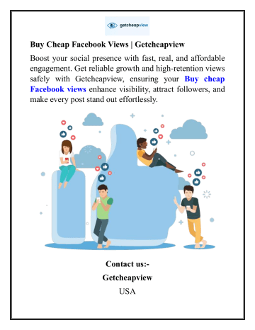 Buy Cheap Facebook Views | Getcheapview Boost your social presence with fast, real, and affordable engagement. Get reliable growth and high-retention views safely with Getcheapview, ensuring your Buy cheap Facebook views enhance visibility, attract followers, and make every post stand out effortlessly. Contact us:Getcheapview USA