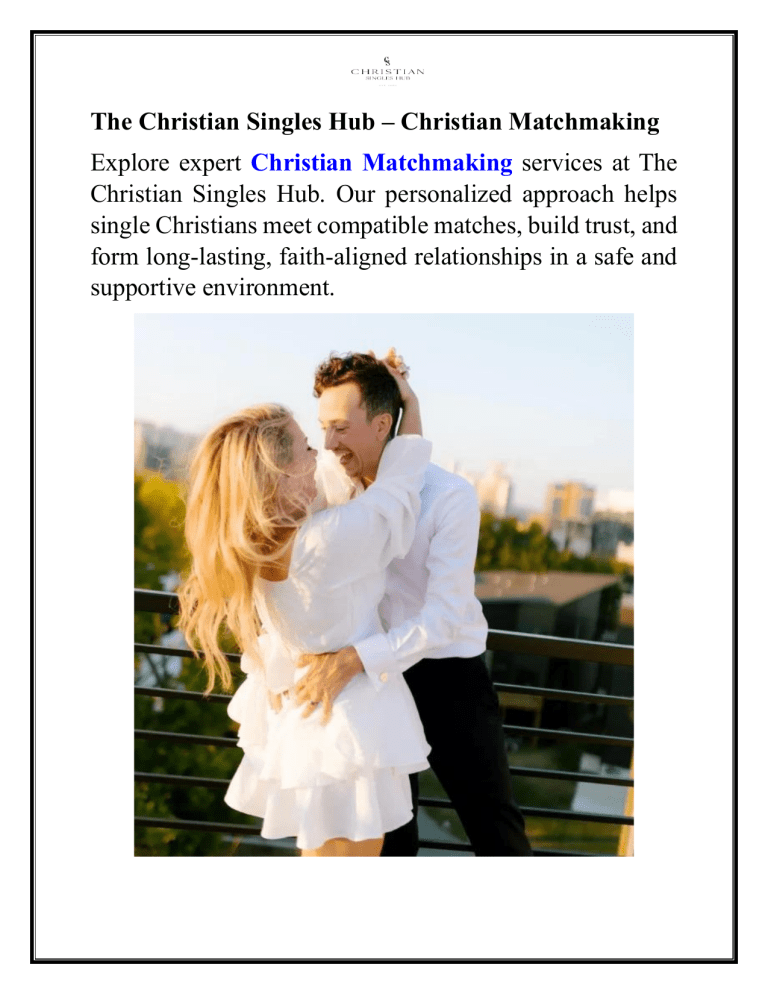 The Christian Singles Hub – Christian Matchmaking Explore expert Christian Matchmaking services at The Christian Singles Hub. Our personalized approach helps single Christians meet compatible matches, build trust, and form long-lasting, faith-aligned relationships in a safe and supportive environment.