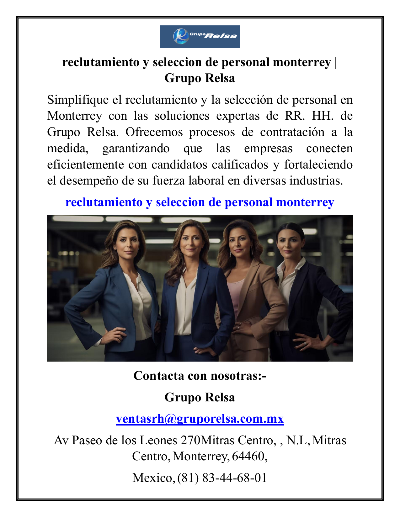 reclutamiento y seleccion de personal monterrey Grupo Relsa